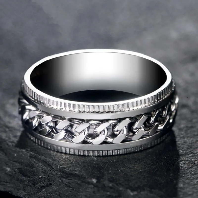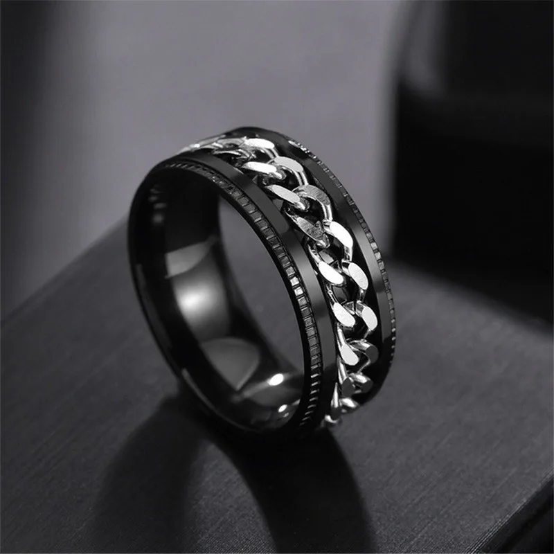 Крутое кольцо для тревоги в стиле панк из нержавеющей стали, вращающееся мужское кольцо, кольцо для антистресса высокого качества, подарок