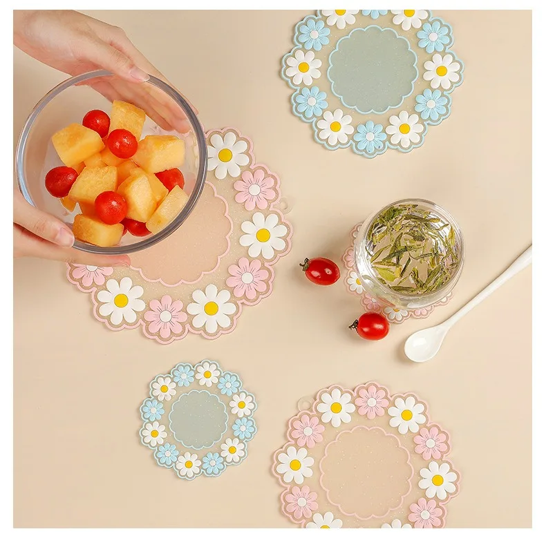 Подставки в форме цветка, теплоизоляционная подставка, мягкая резиновая столовая посуда, коврик, нескользящая подставка под чашку, коврик для стола, подставка под чашку