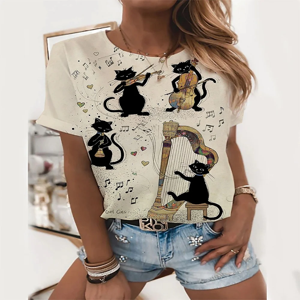 Футболка женская уличная с коротким рукавом, Повседневная рубашка из бутика с 3D принтом кота, уличная одежда