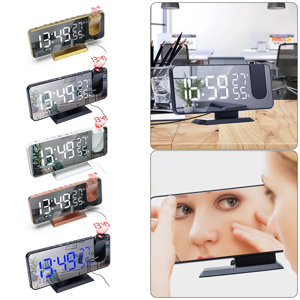 Цифровой будильник с проекцией, вращающийся на 180 радиоприемник, будильник с дисплеем температуры и влажности для спальни и офиса