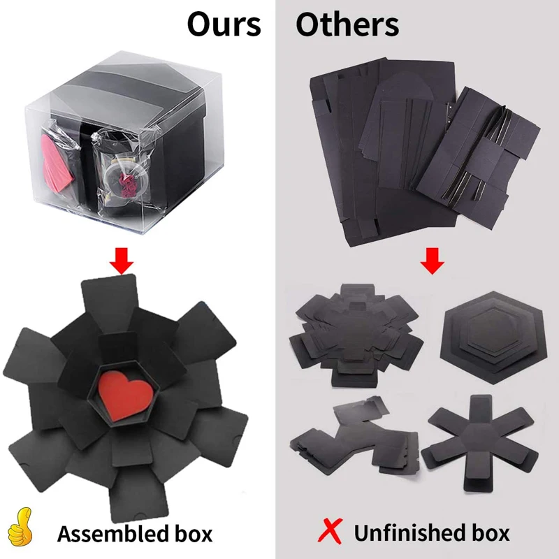【Готовая коробка в сборе 】:Наша Взрывная фотокоробка поставляется в виде собранного готового продукта.Вам нужно всего лишь вставить ваши любимые фотографии, или вы можете сделать несколько шаблонов в соответствии с вашими предпочтениями. Сохраните трудоемкие и громоздкие этапы сборки.
