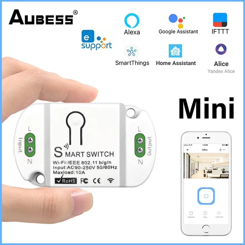 Умный переключатель Aubess EWeLink, Wi-Fi + Bluetooth + 2,4 ГГц, с дистанционным управлением, смарт-переключатели, работает с Amazon Alexa Google Home