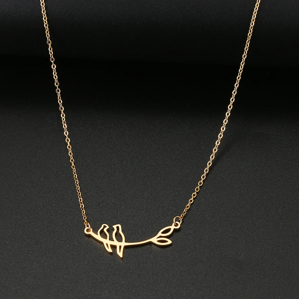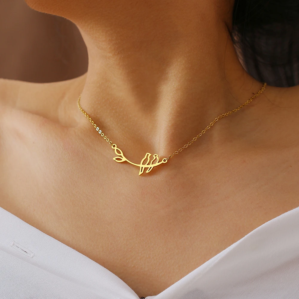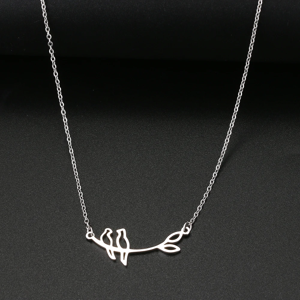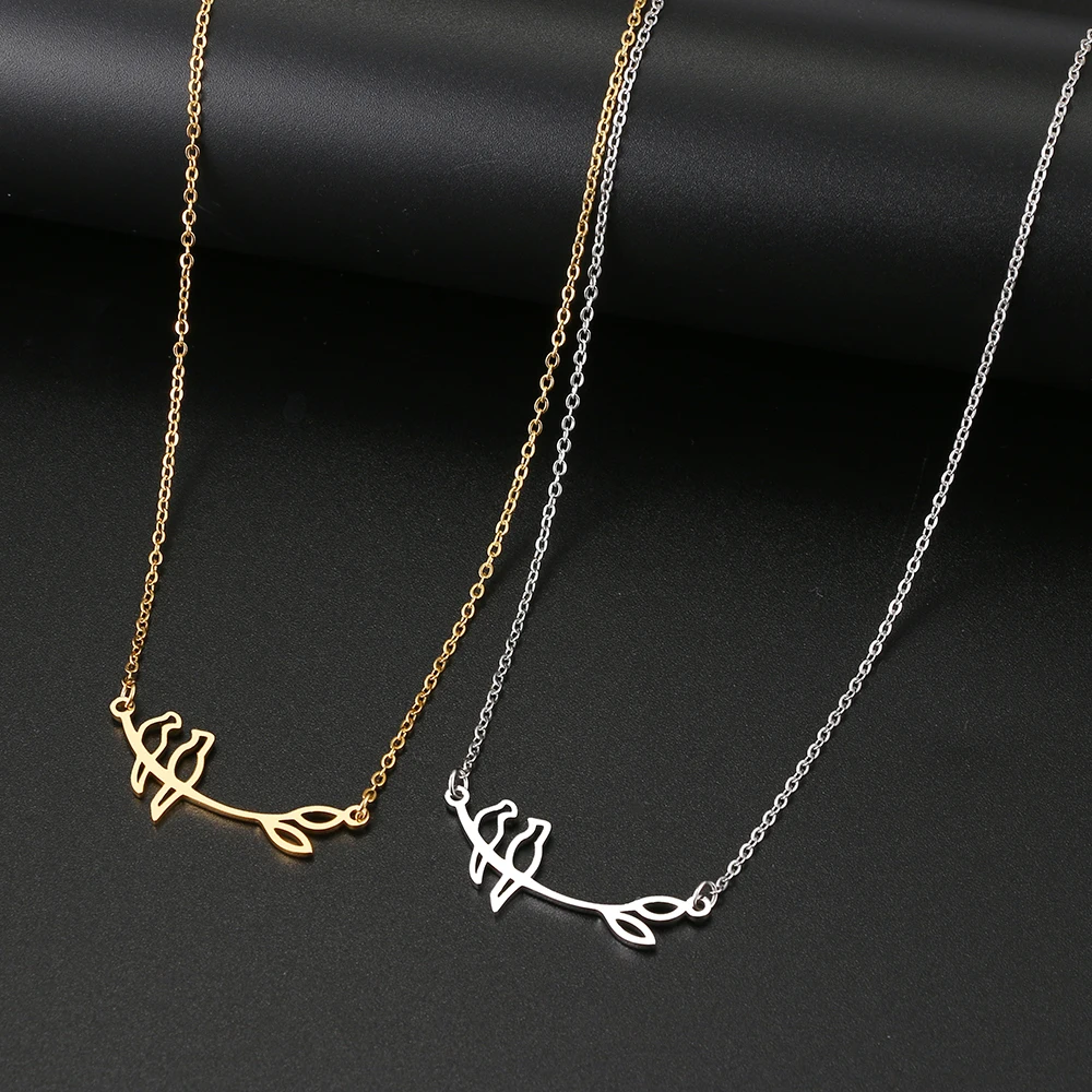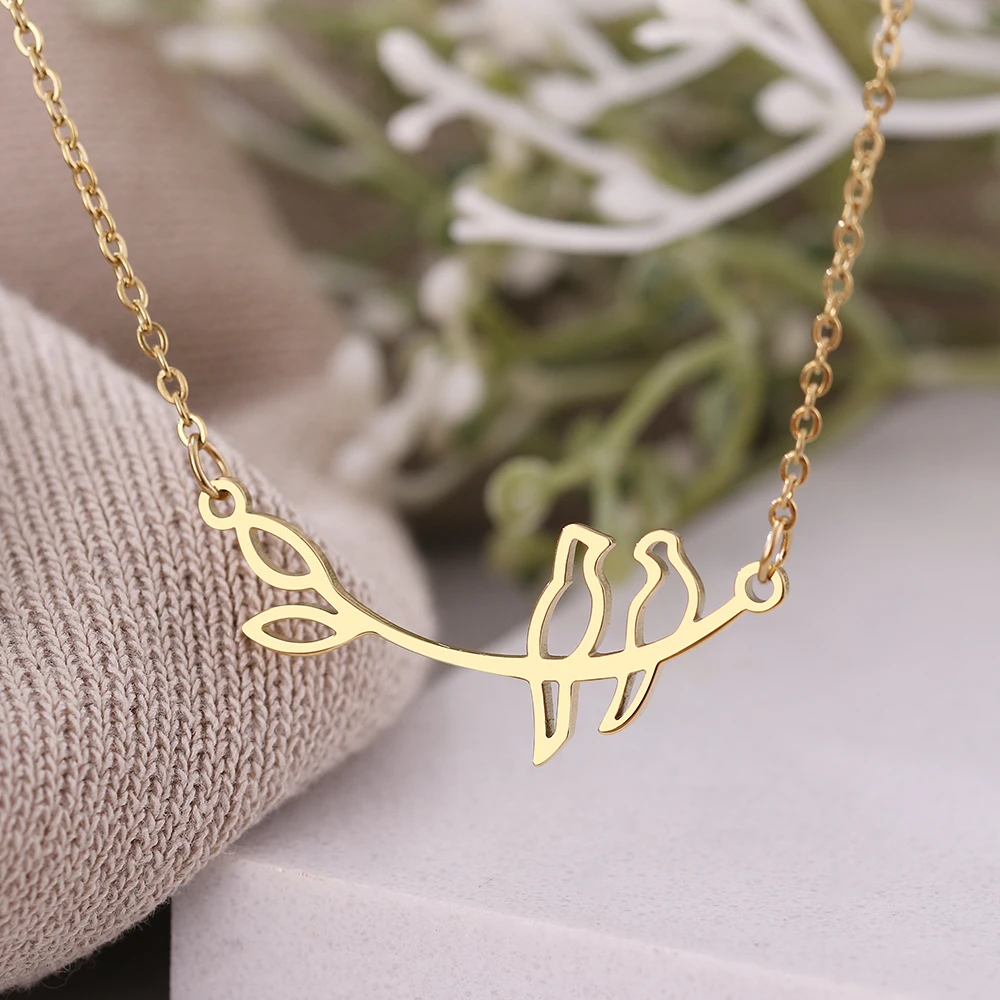 Ожерелья из нержавеющей стали с двумя полыми птичьими ветвями, подвеска-цепочка, чокер, очаровательное модное ожерелье для женщин, ювелирные изделия, подарок для вечеринки, мама