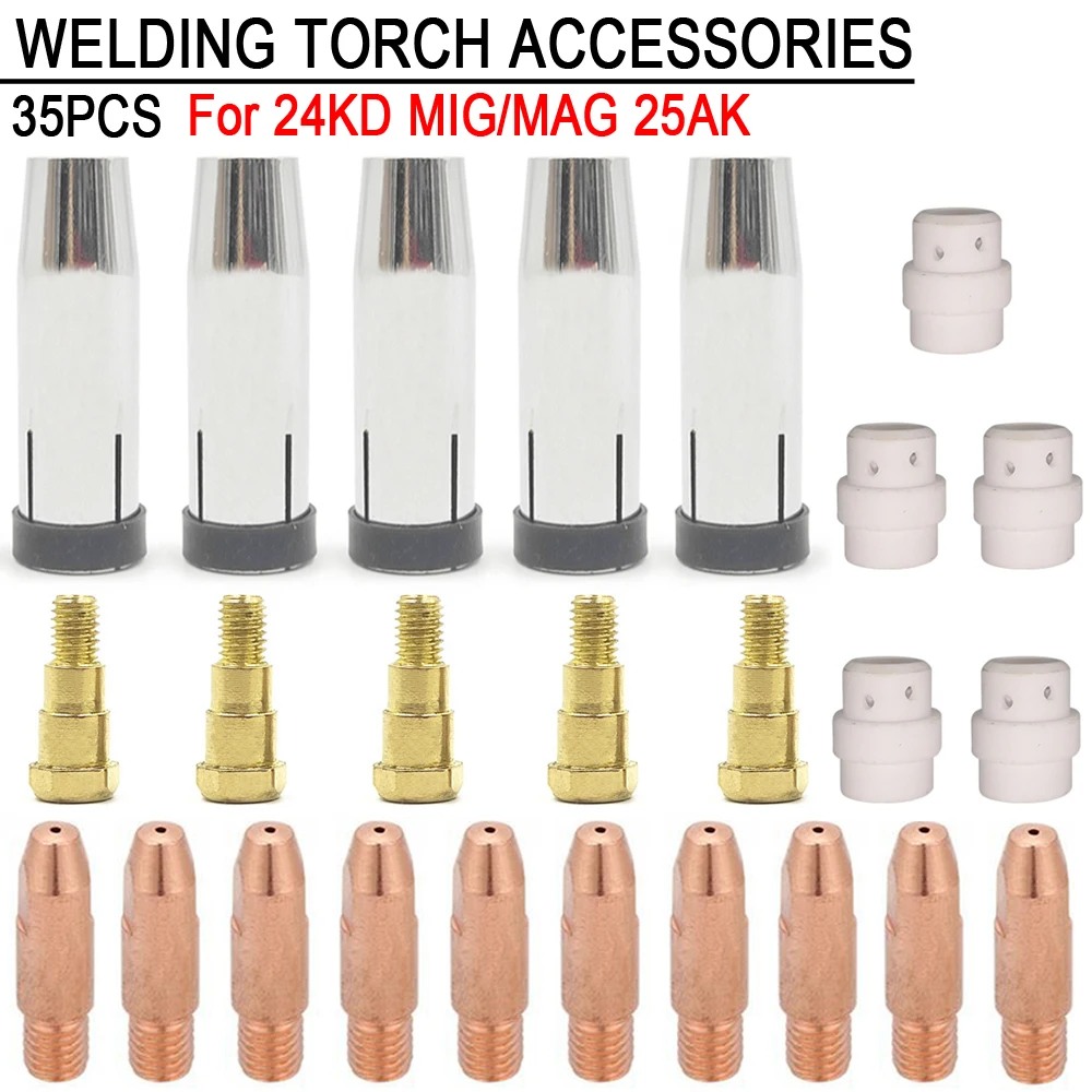 35 шт. 24KD сварочный фонарь расходный 0,8/0,9/1,0/1,2 мм MIG Фонарь держатель наконечника сопла газа диффузор MIG MAG сварочный аппарат