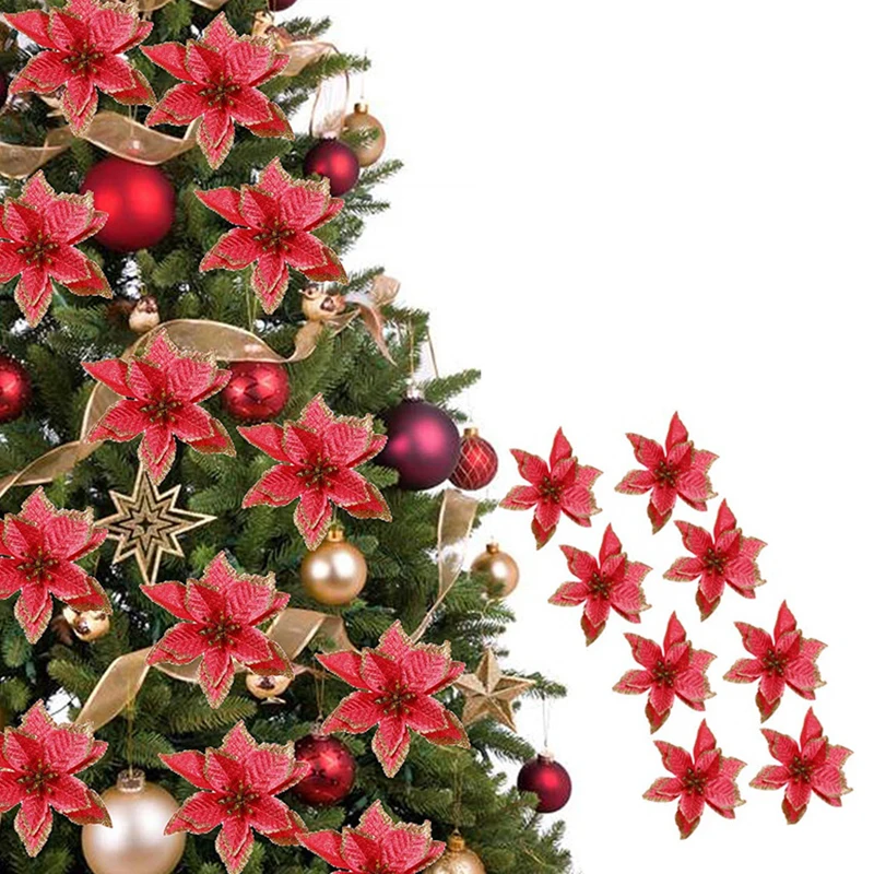 10 шт. Блестящий пуансеттийный цветок, Рождественский венок, украше...