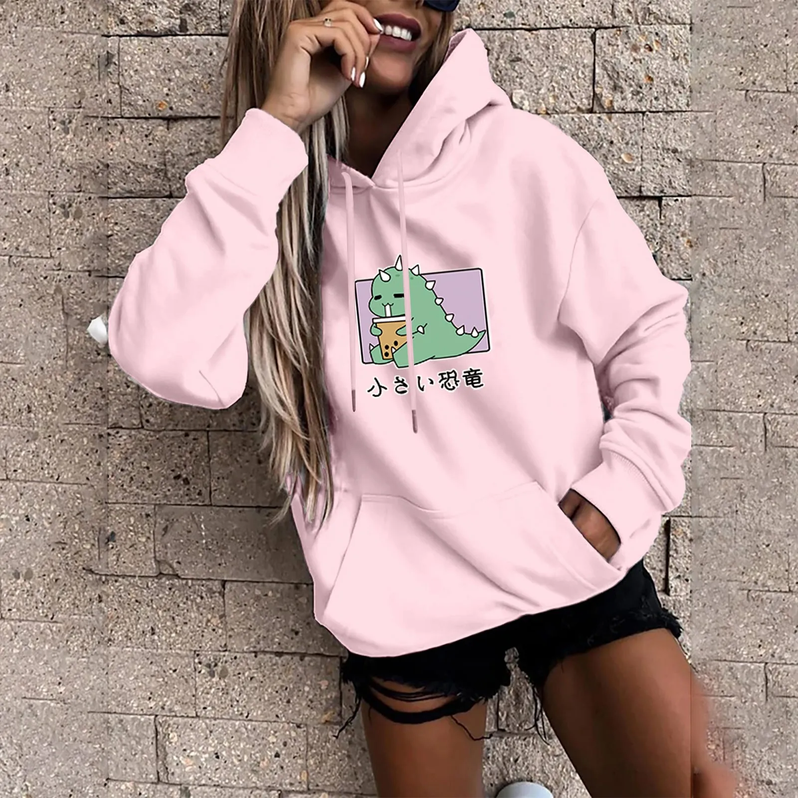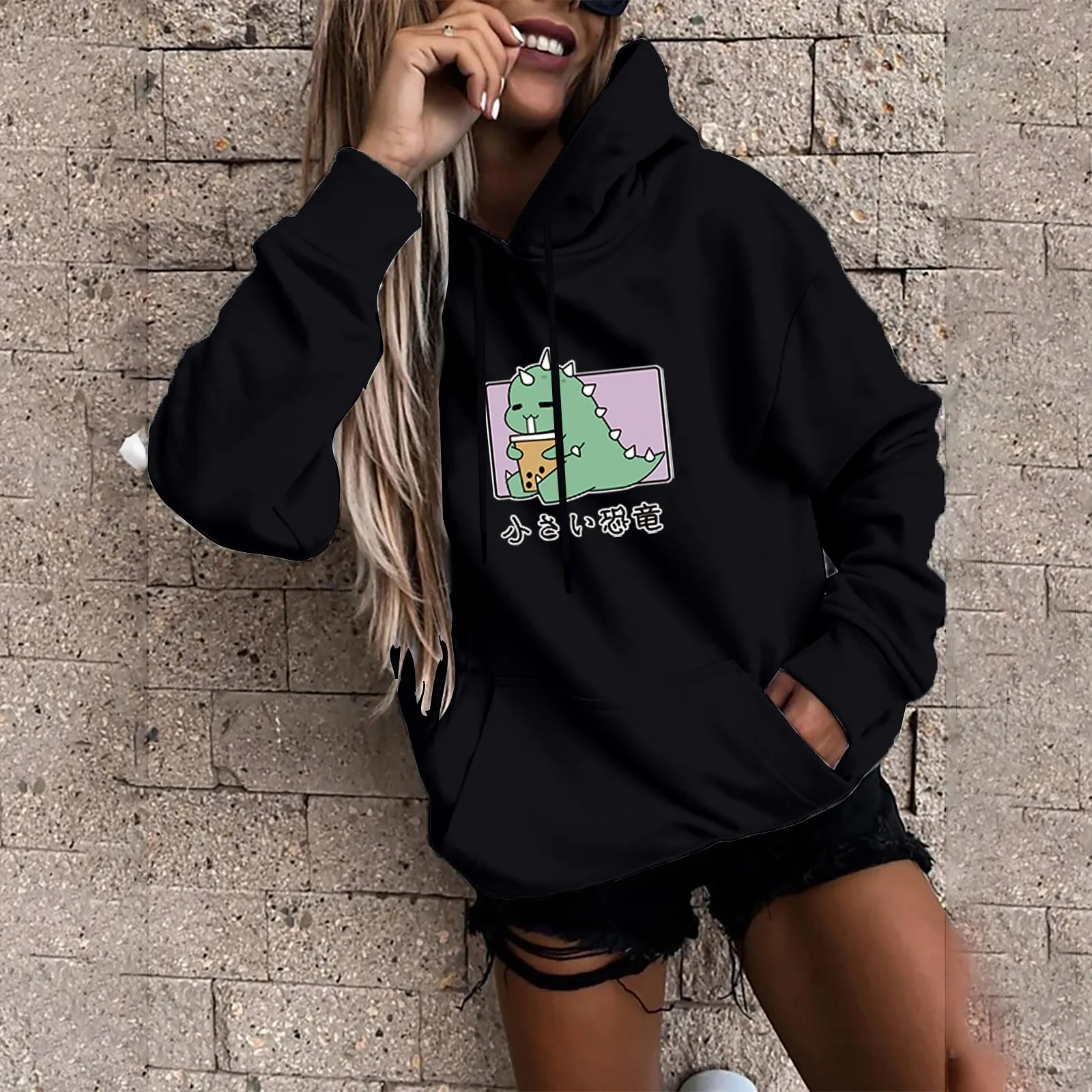 Худи Hillsionly, большие размеры, женская модная повседневная Милая толстовка с капюшоном и принтом животных, свободный спортивный топ, пуловер, женская одежда