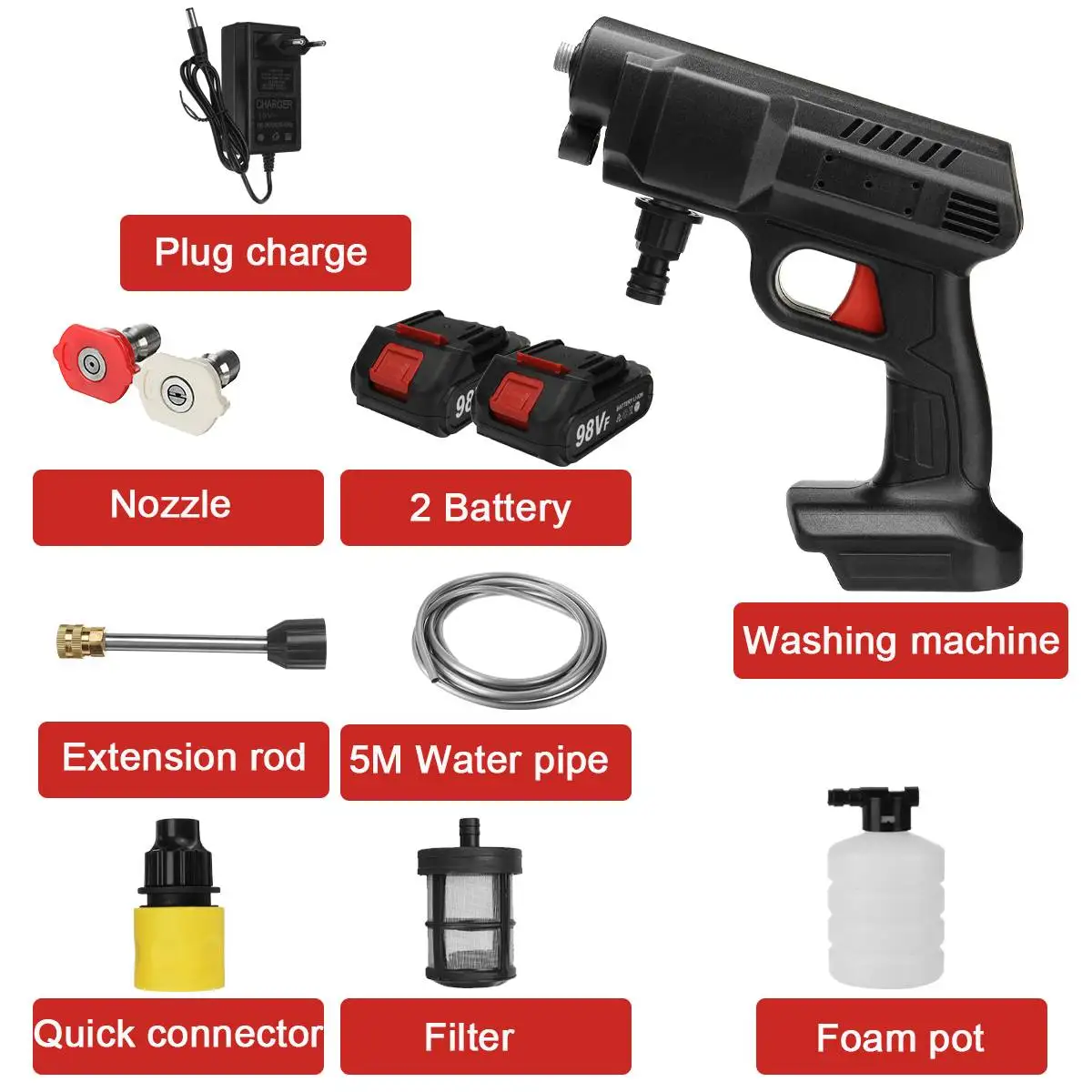 Беспроводной пистолет для мойки автомобиля под высоким давлением, 1500 Вт, 50 бар, 30000 мАч, пеногенератор, водяной пистолет-распылитель с 2 аккумуляторами 98VF