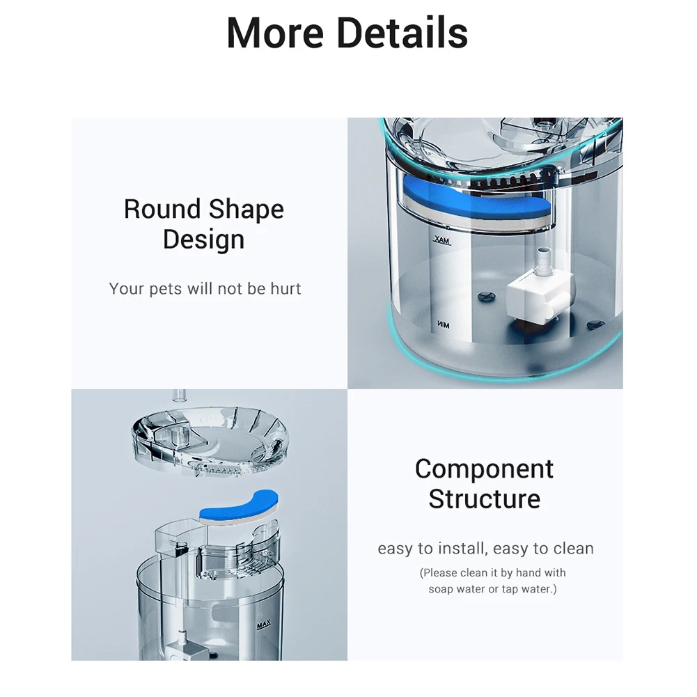 Размер продукта: фонтанчик для питья для 16,5*15,5 см/6,5 * 6.1in, фильтрующий элемент 10*3*1 см/3,9*1,2 * 0.4in