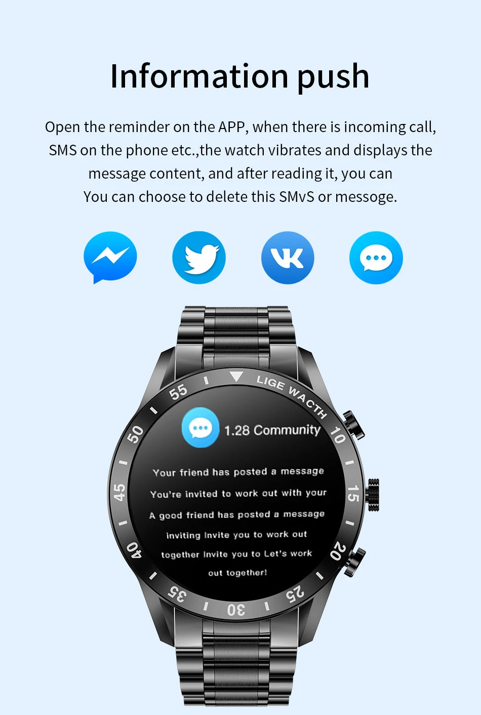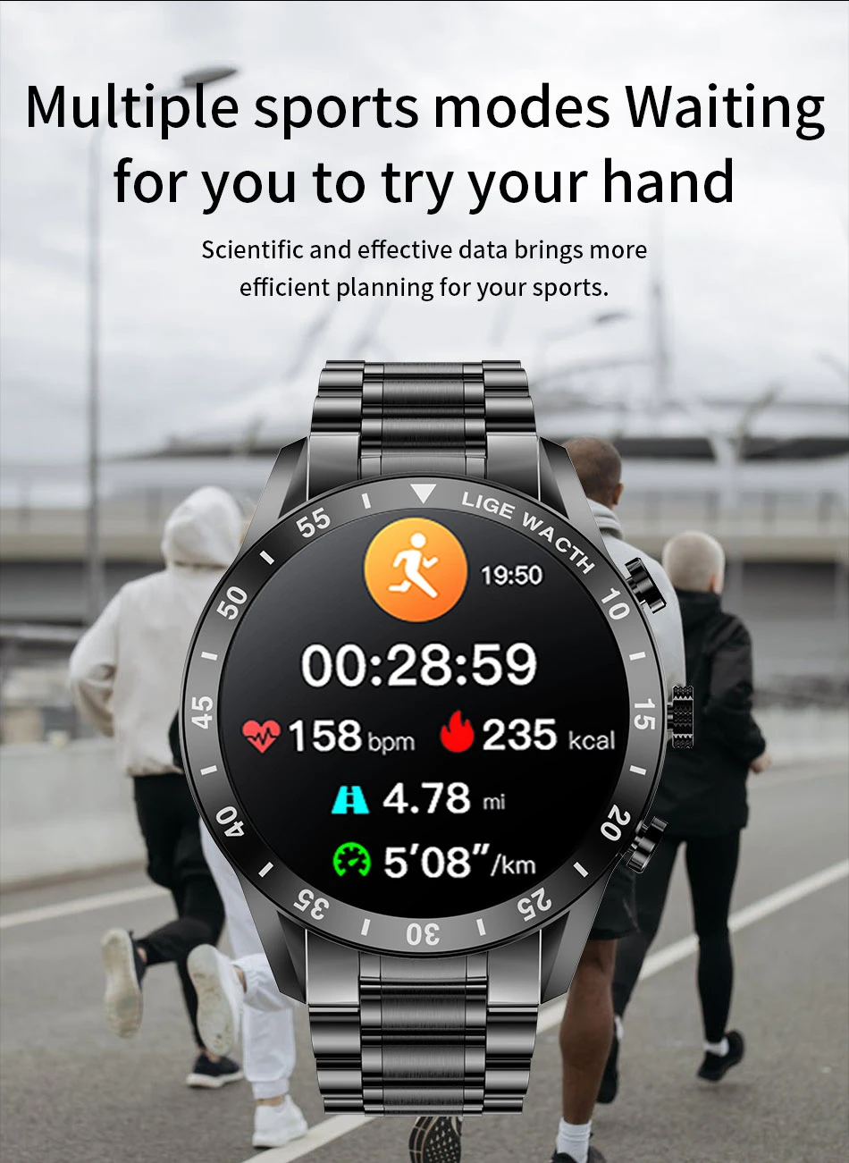 Смарт-часы LIGE мужские с поддержкой Bluetooth, тонометром и будильником
