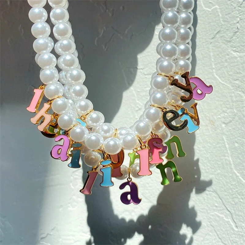 Индивидуальное ожерелье с именем для женщин, жемчужное ожерелье на ...