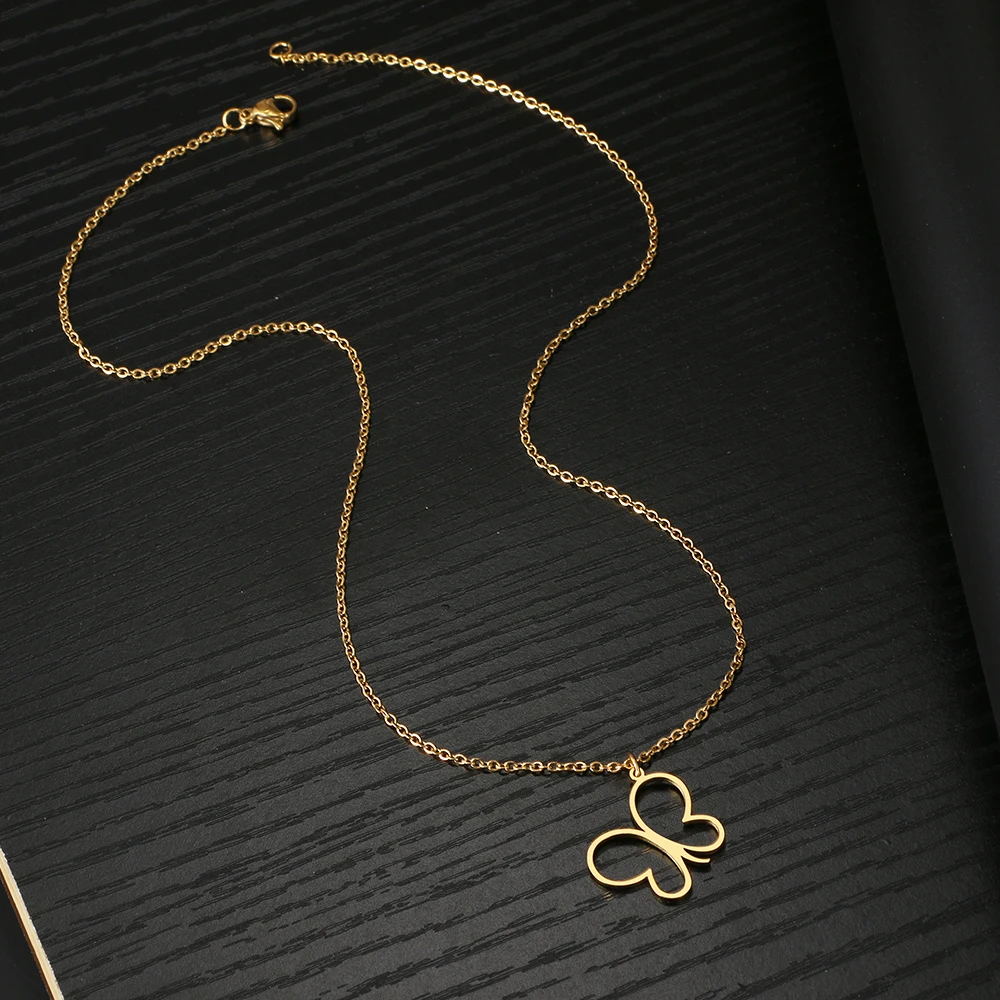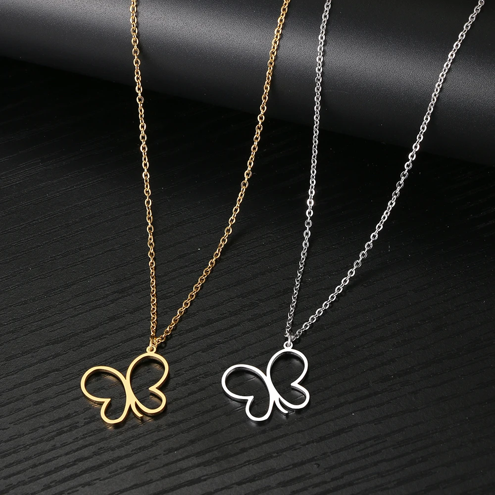 Ожерелья из нержавеющей стали, простая Милая подвеска-бабочка с прорезями, чокер, очаровательное модное ожерелье для женщин, ювелирные изделия, подарки Вечерние