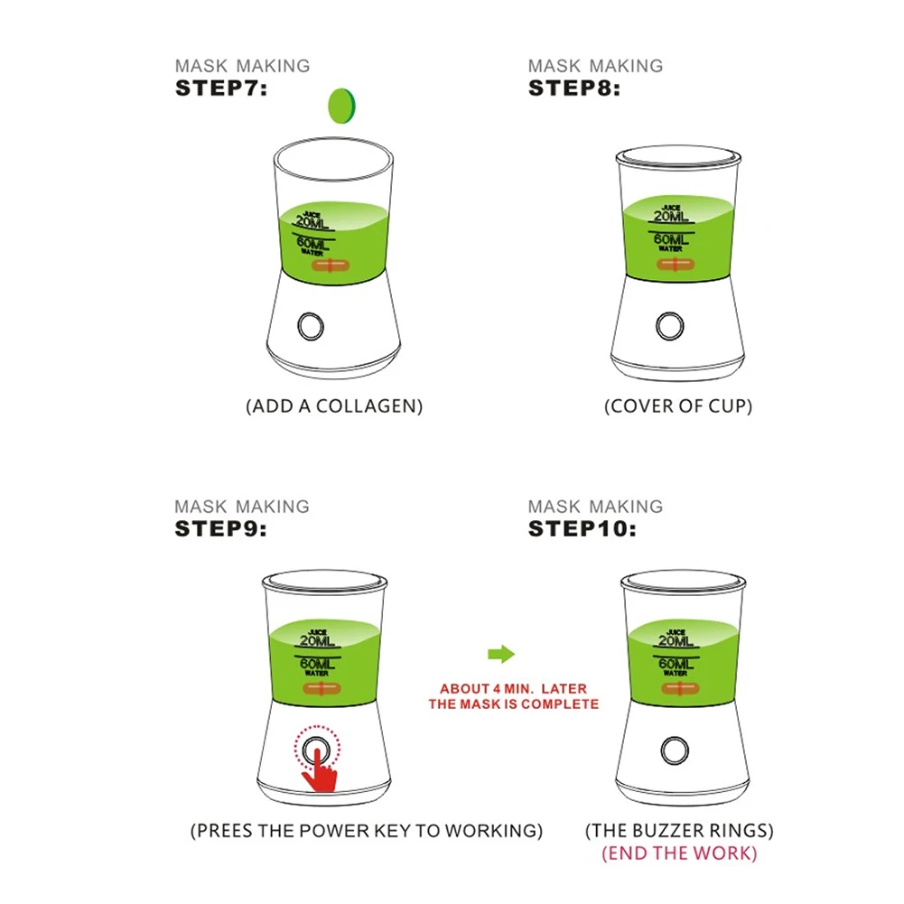 * 6. Машина имеет функцию автоматического синхронизации. Через 3-4 минуты он автоматически прекратит работу и отправит музыку, чтобы напомнить вам, что маска сделана.