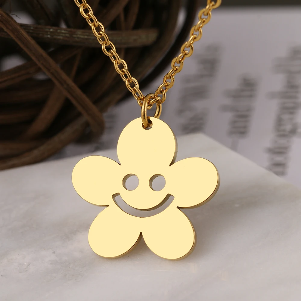 Ожерелья из нержавеющей стали, цепочка с подвеской в виде цветка, улыбки, чокер, очаровательное модное ожерелье для женщин, ювелирные изделия, подарки для вечеринок и друзей