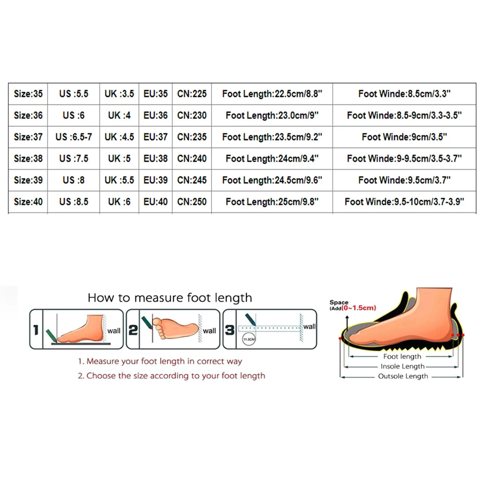 Теплое напоминание:РазныеПожалуйста, выберите размер в соответствии с типом вашей стопы.
