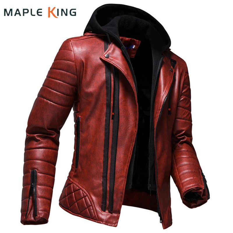 Мужская мотоциклетная куртка из ПУ кожи, красная куртка с капюшоном...