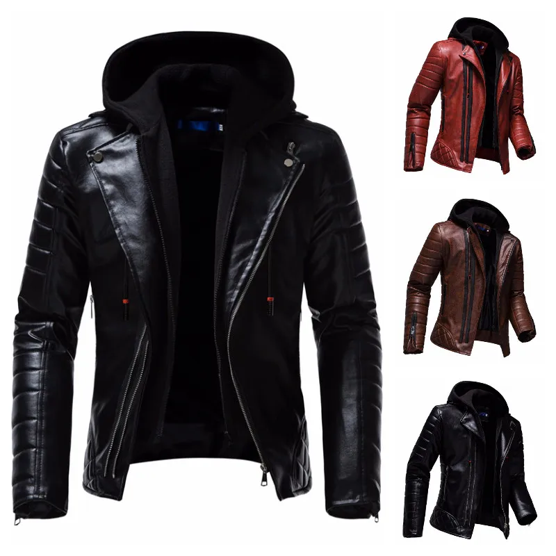 Мужская куртка из искусственной кожи с капюшоном, роскошные мотоциклетные куртки со съемной двойной молнией, мужское ветрозащитное пальто, 2022