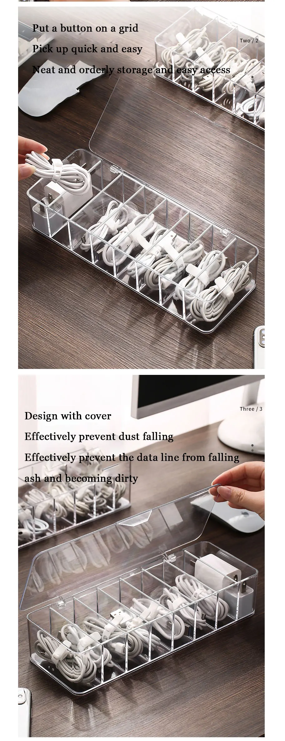 Прозрачный визуальный Настольный кабель для передачи данных разделительный ящик для хранения мобильный телефон кабель для зарядки наушников шнур питания Сортировка и фиксация
