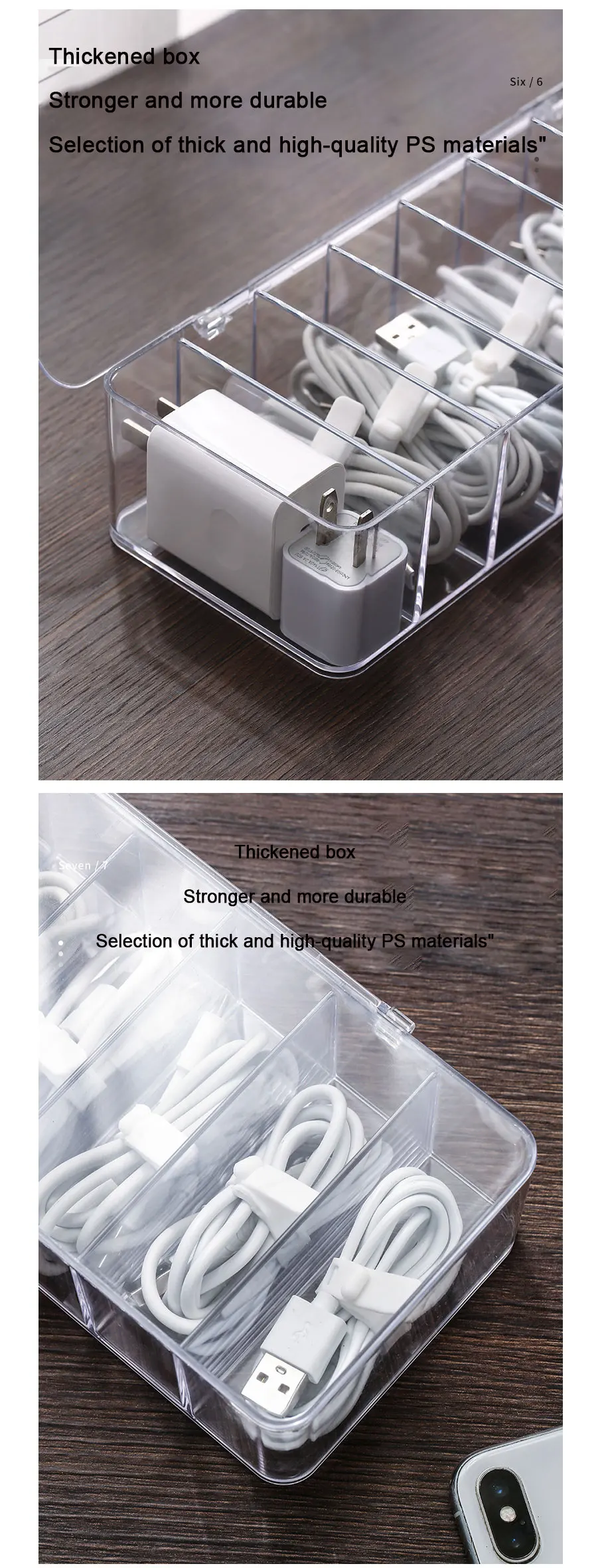 Коробка для хранения кабеля прозрачная пластиковая коробка для хранения данных для стола канцелярские принадлежности органайзер для макияжа, коробка для ключей и ювелирных изделий