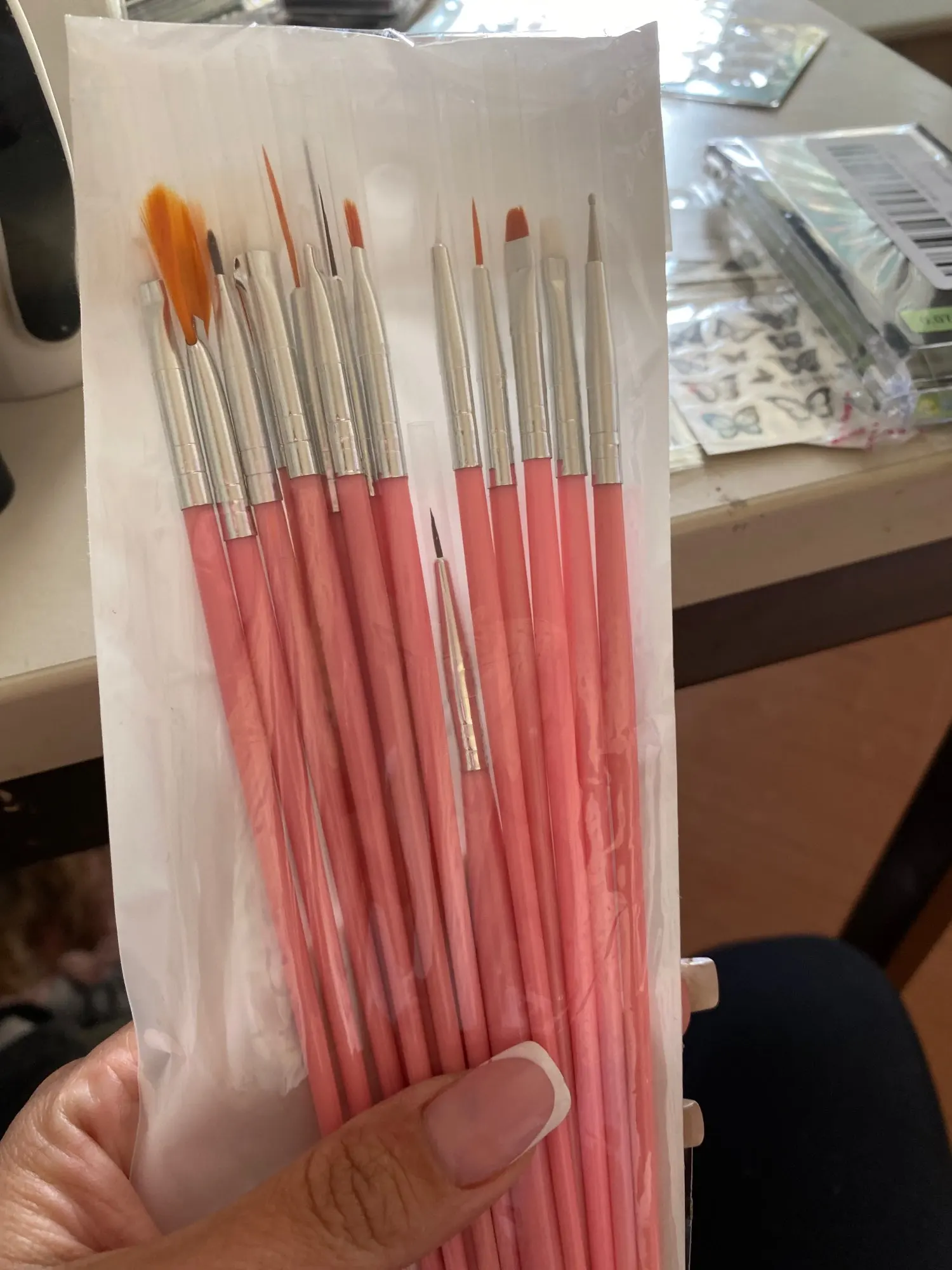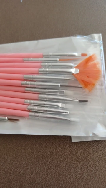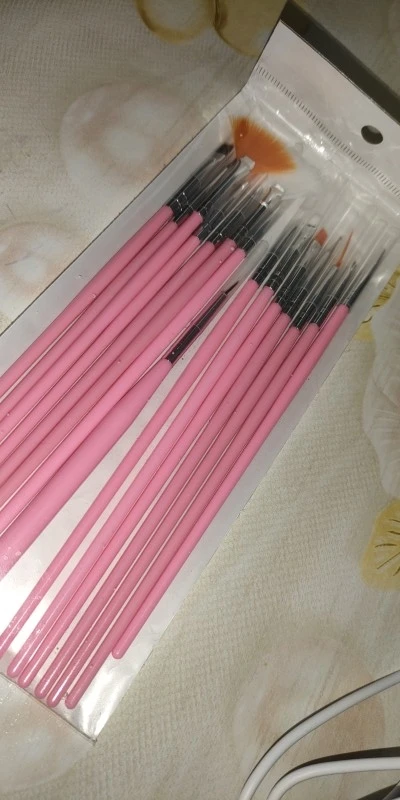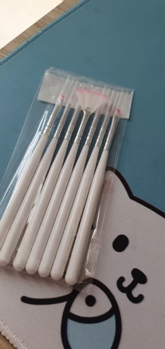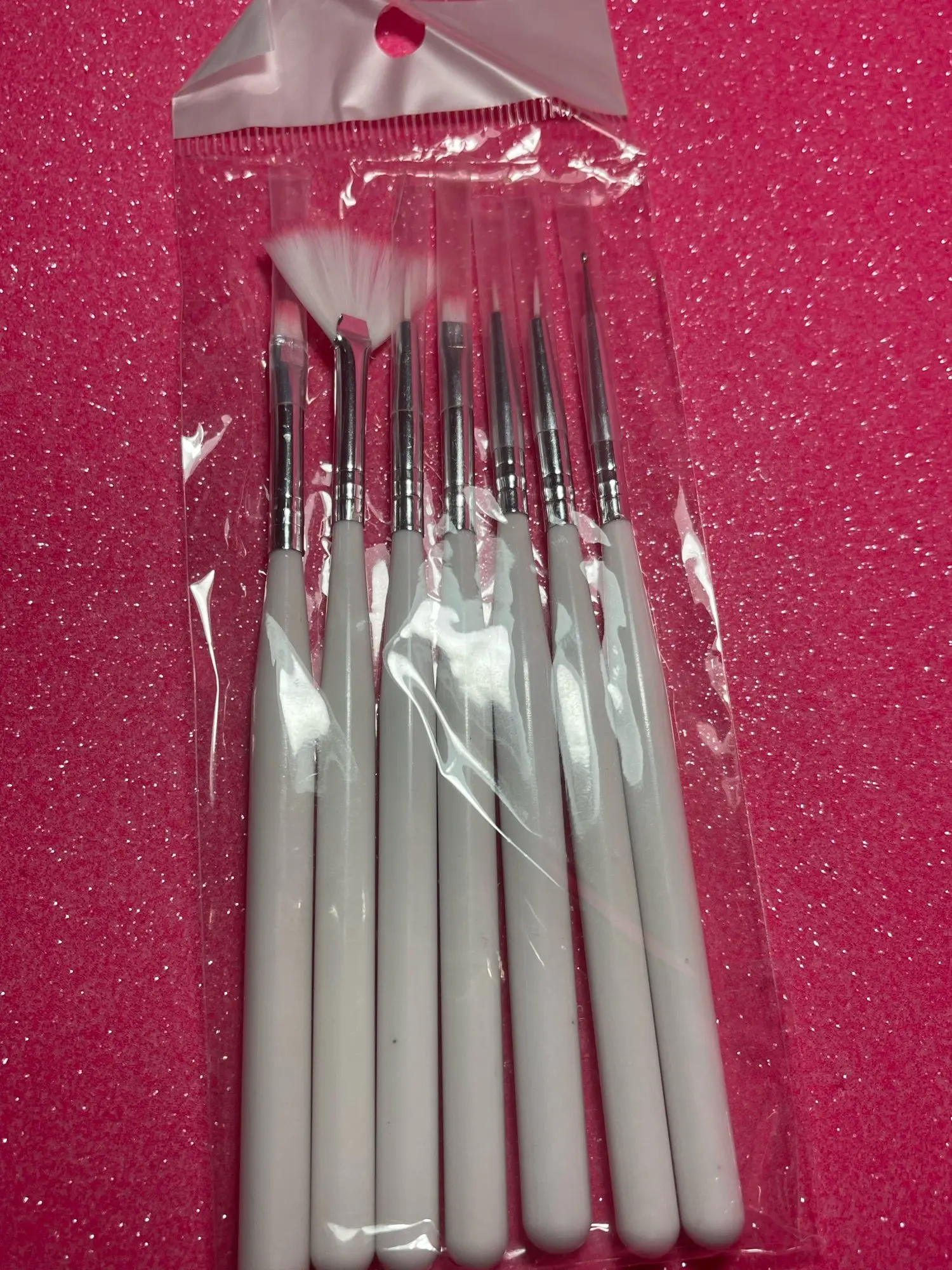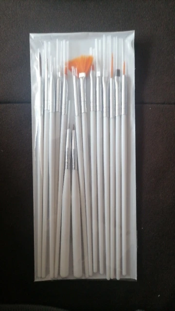То, что я искал. Кисти для маникюра, а также для поделок, используйте воображение для того, сколько вещей вы можете использовать! Это семь кистей с очень простыми и простыми пластиковыми ручками, но они хороши для использования. Щетка сама по себе очень мягкая и поставляется с крышкой, чтобы они не распухли, но будьте осторожны при надевании, потому что вы оставляете немного щетинки и деформируете. Доволен покупкой, они также прибыли рано.