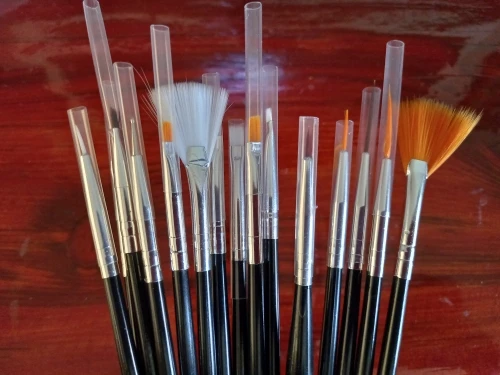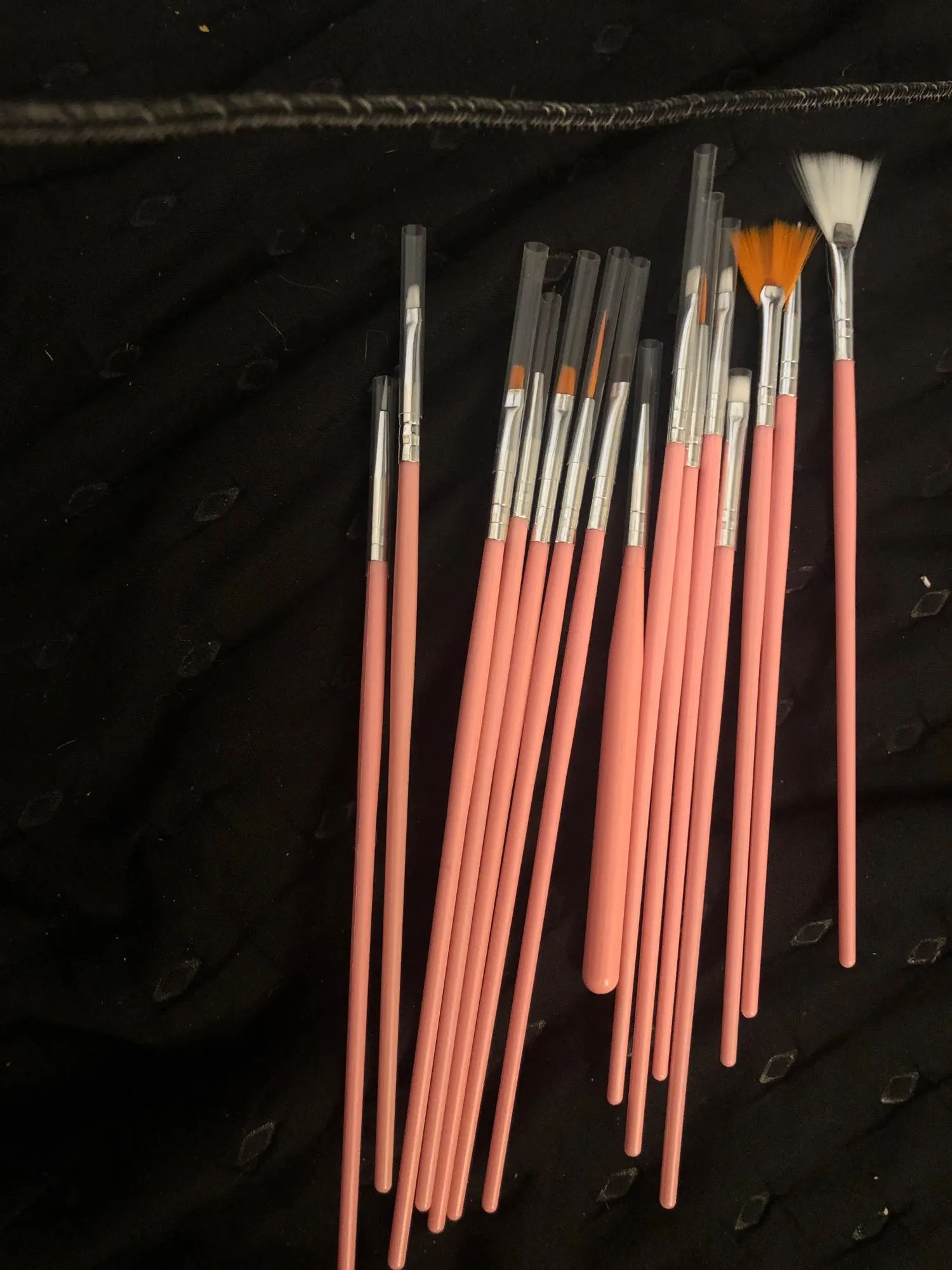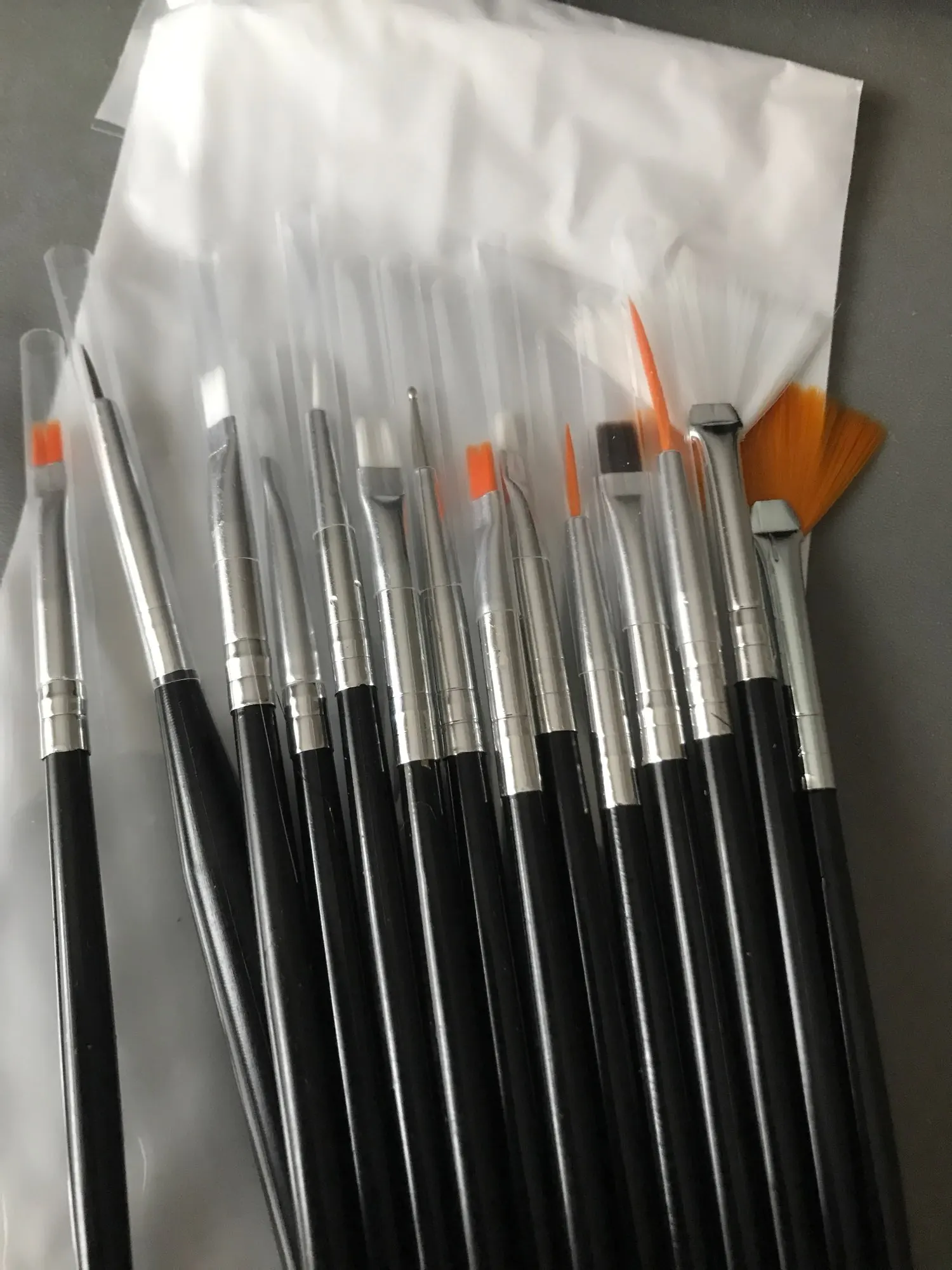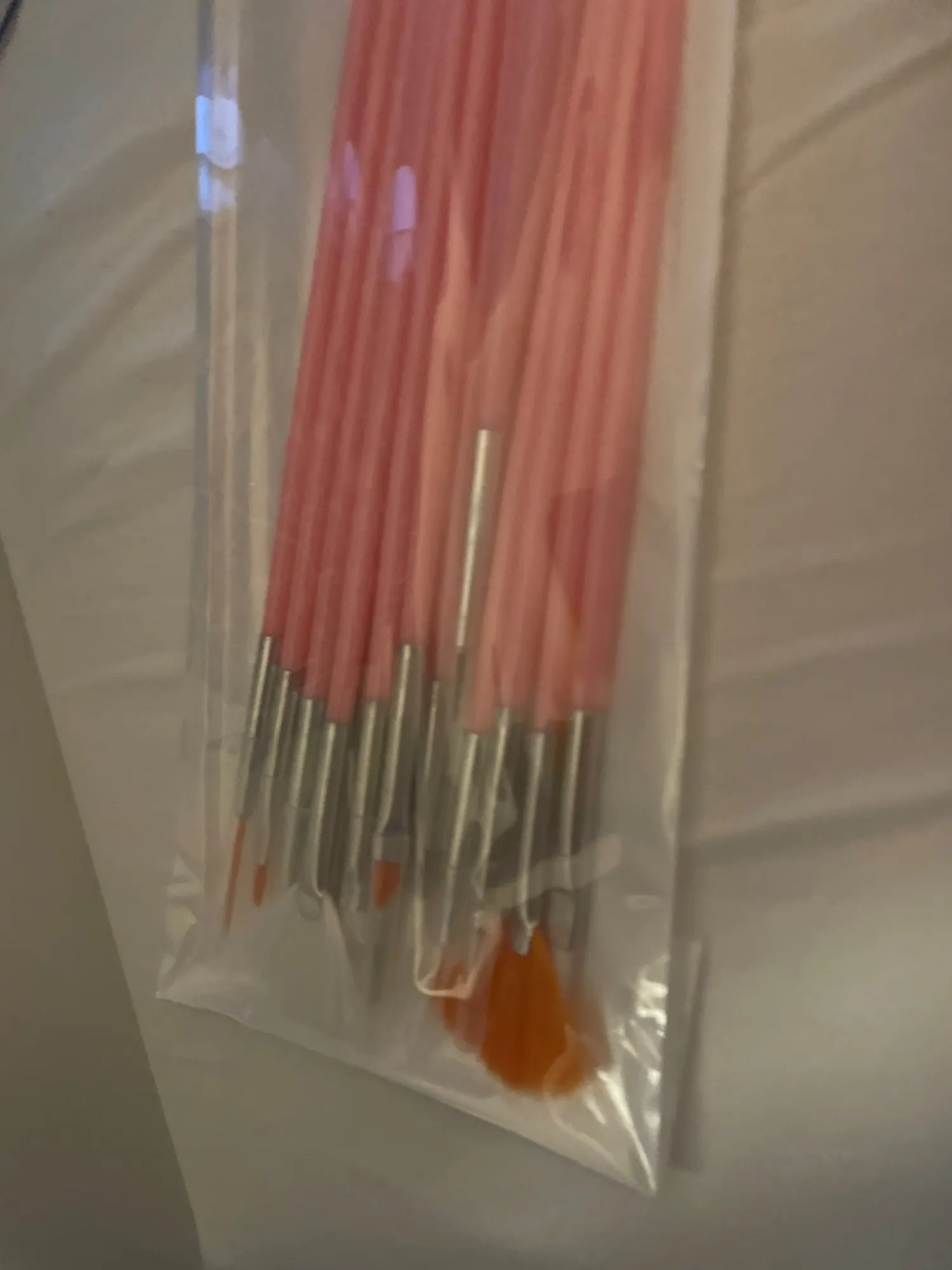 То, что я искал. Кисти для маникюра, а также для поделок, используйте воображение для того, сколько вещей вы можете использовать! Это семь кистей с очень простыми и простыми пластиковыми ручками, но они хороши для использования. Щетка сама по себе очень мягкая и поставляется с крышкой, чтобы они не распухли, но будьте осторожны при надевании, потому что вы оставляете немного щетинки и деформируете. Доволен покупкой, они также прибыли рано.