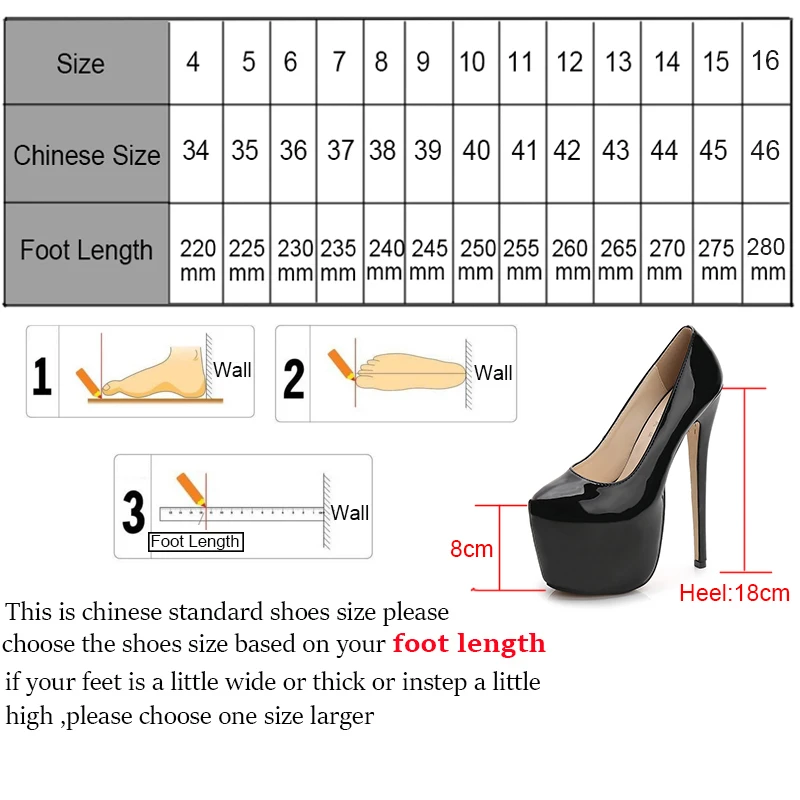 Туфли-лодочки на очень высоком каблуке 18 см, туфли для ночного клуба на платформе 8 см, модельные туфли для подиума, ночного клуба, вечевечерние, туфли больших размеров 35-44