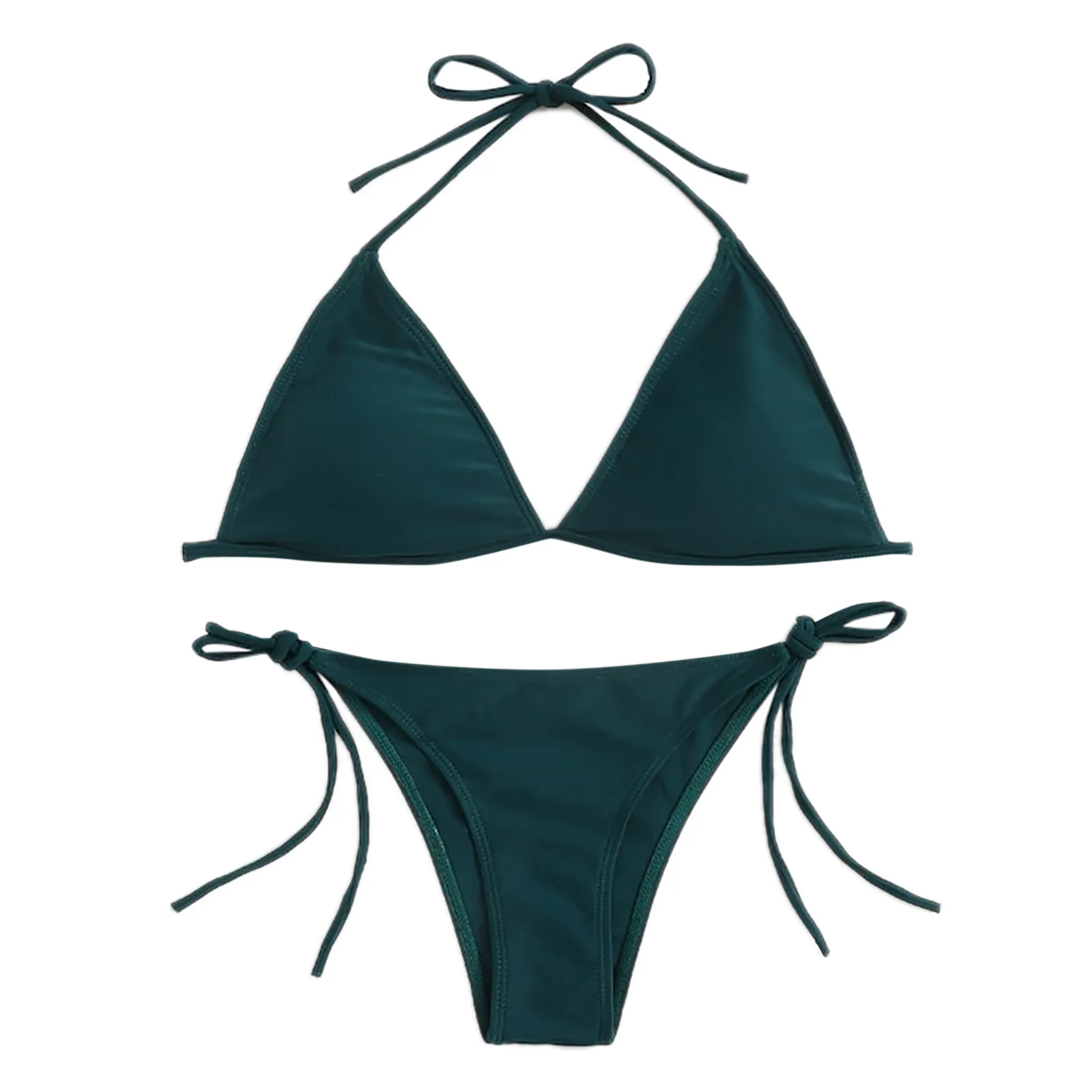 Женский модный комплект бикини, пикантный однотонный купальник-бики...