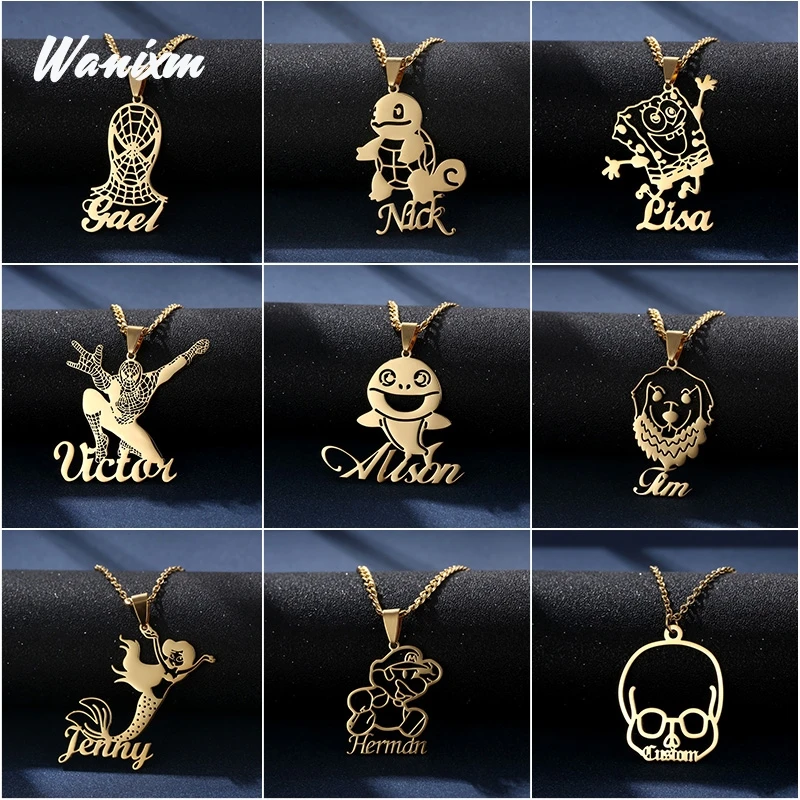 Ожерелья с именем персонажа мультфильма на заказ, подвески, детские ювелирные изделия, ожерелье с именной табличкой из нержавеющей стали на заказ, детский подарок