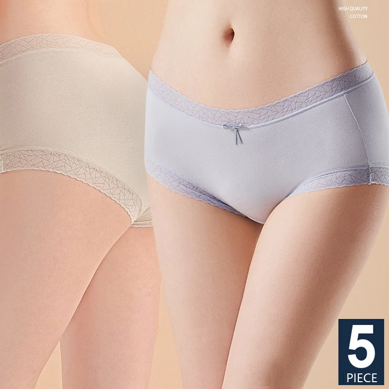 5 шт., женские хлопковые трусики, дышащее нижнее белье, милые трусы с бантом для девочек, сексуальные трусы со средней талией, женское нижнее белье, M-XL нижнее белье