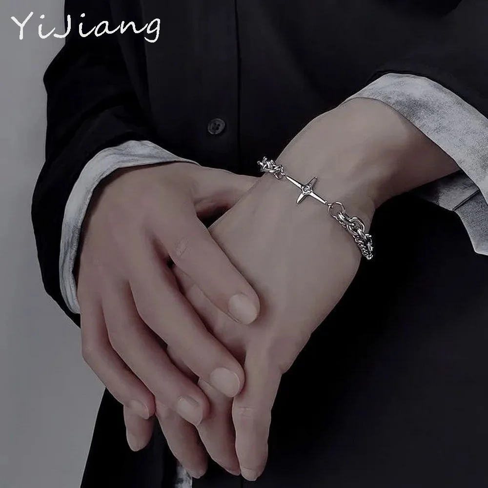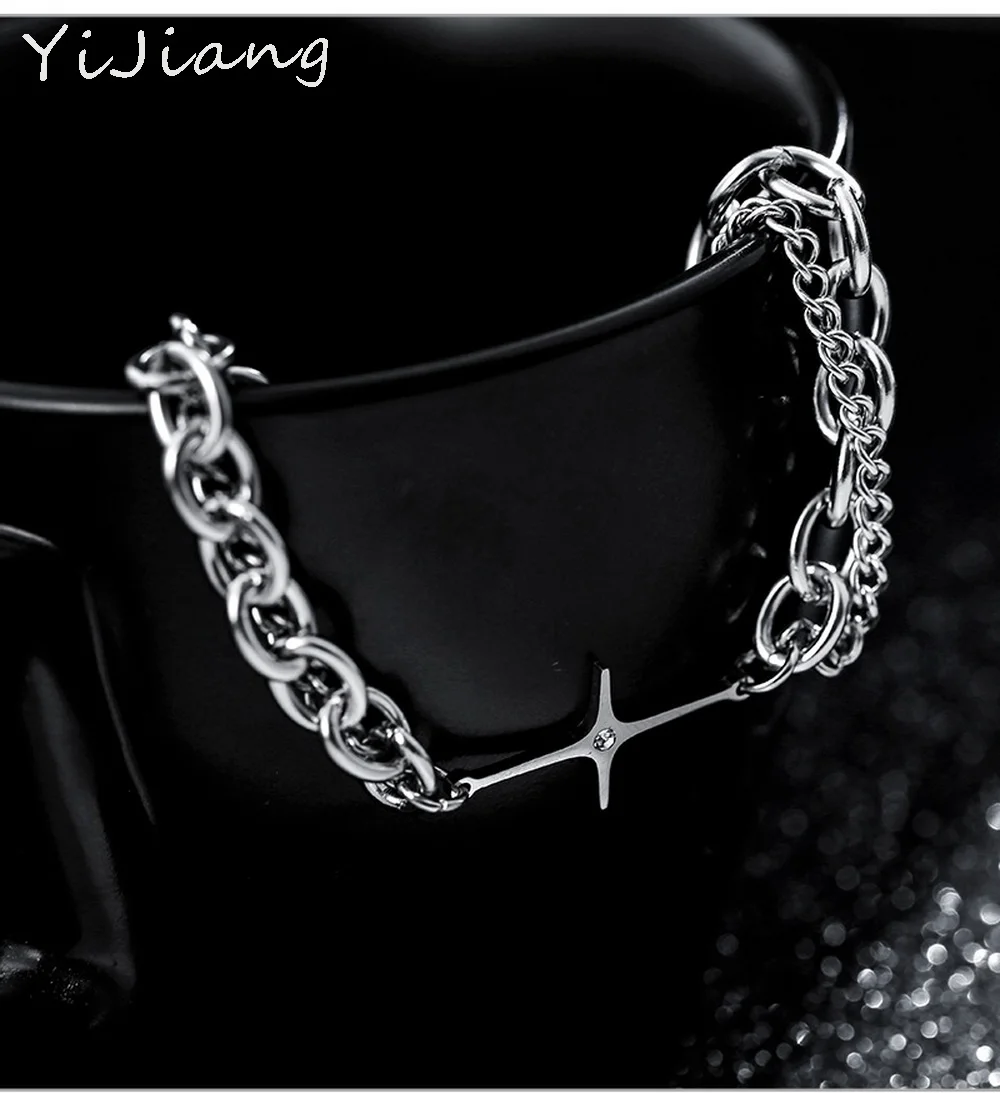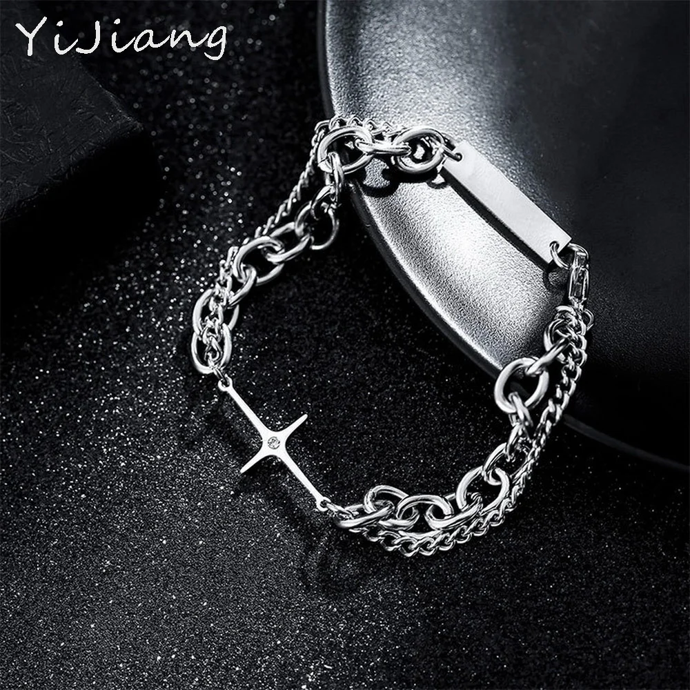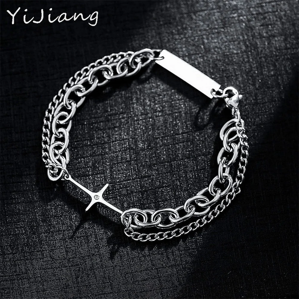 Купите 1 Получите 2 браслет с крестом Звездный бриллиант серебряные ювелирные изделия из титановой стали уличный карабин с застежкой регулируемый размер неувядающий