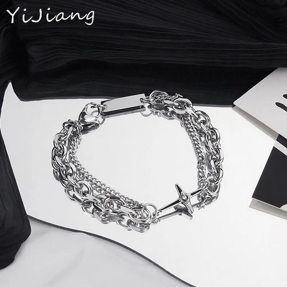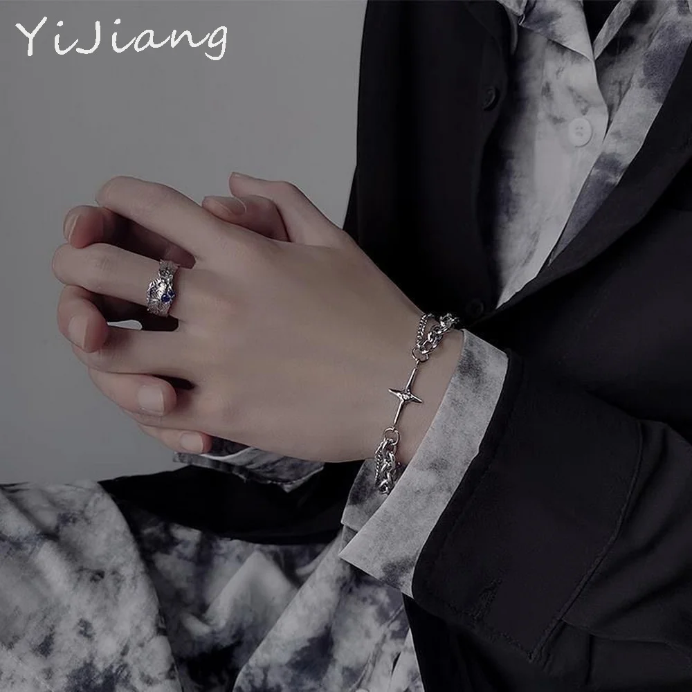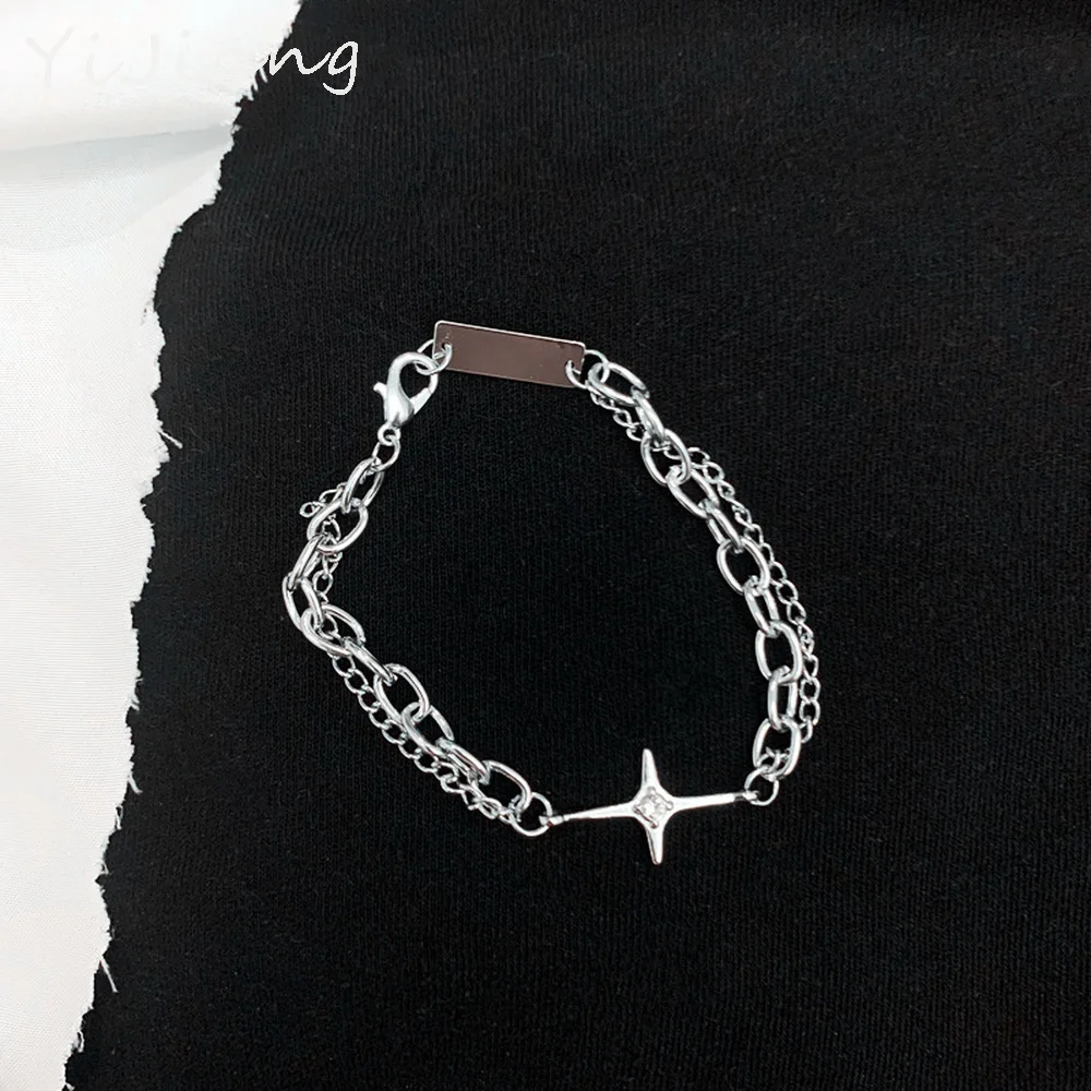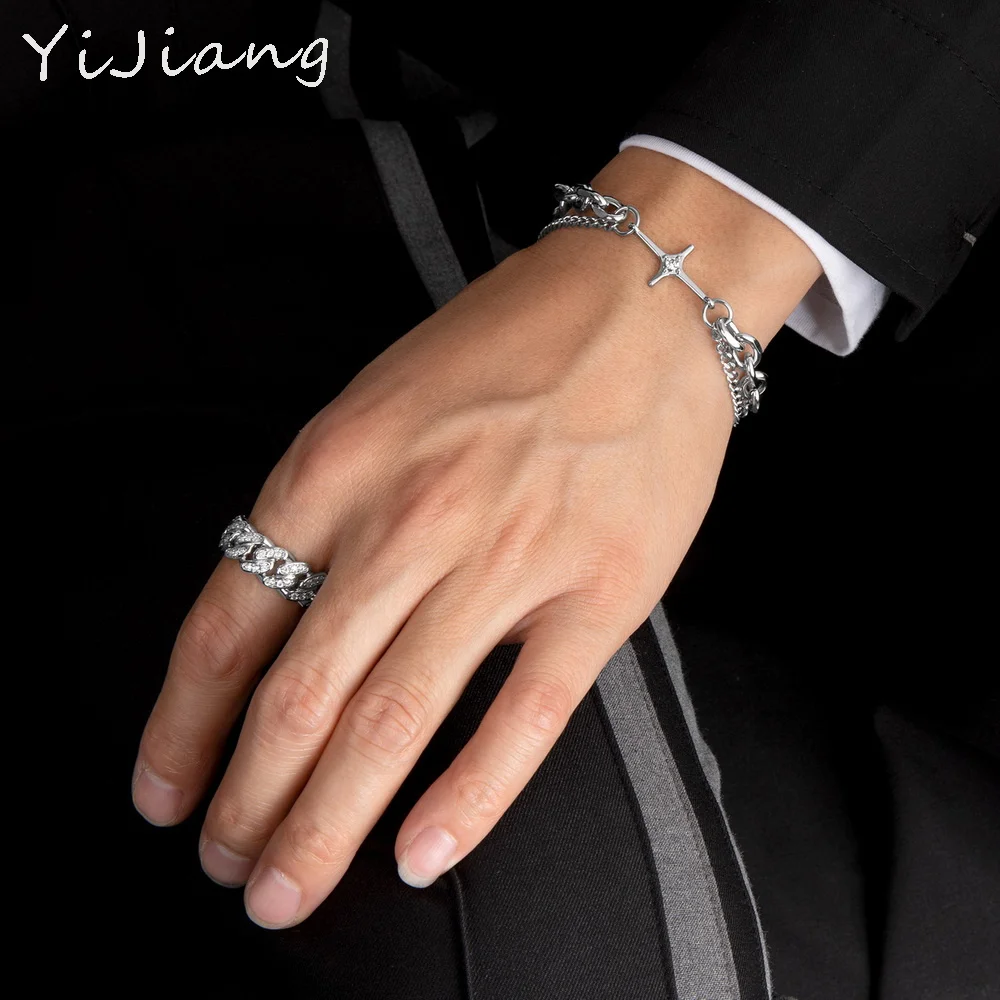 Купите 1 Получите 2 браслет с крестом Звездный бриллиант серебряные ювелирные изделия из титановой стали уличный карабин с застежкой регулируемый размер неувядающий