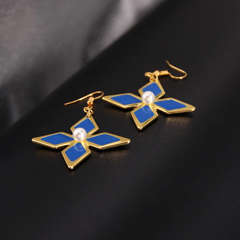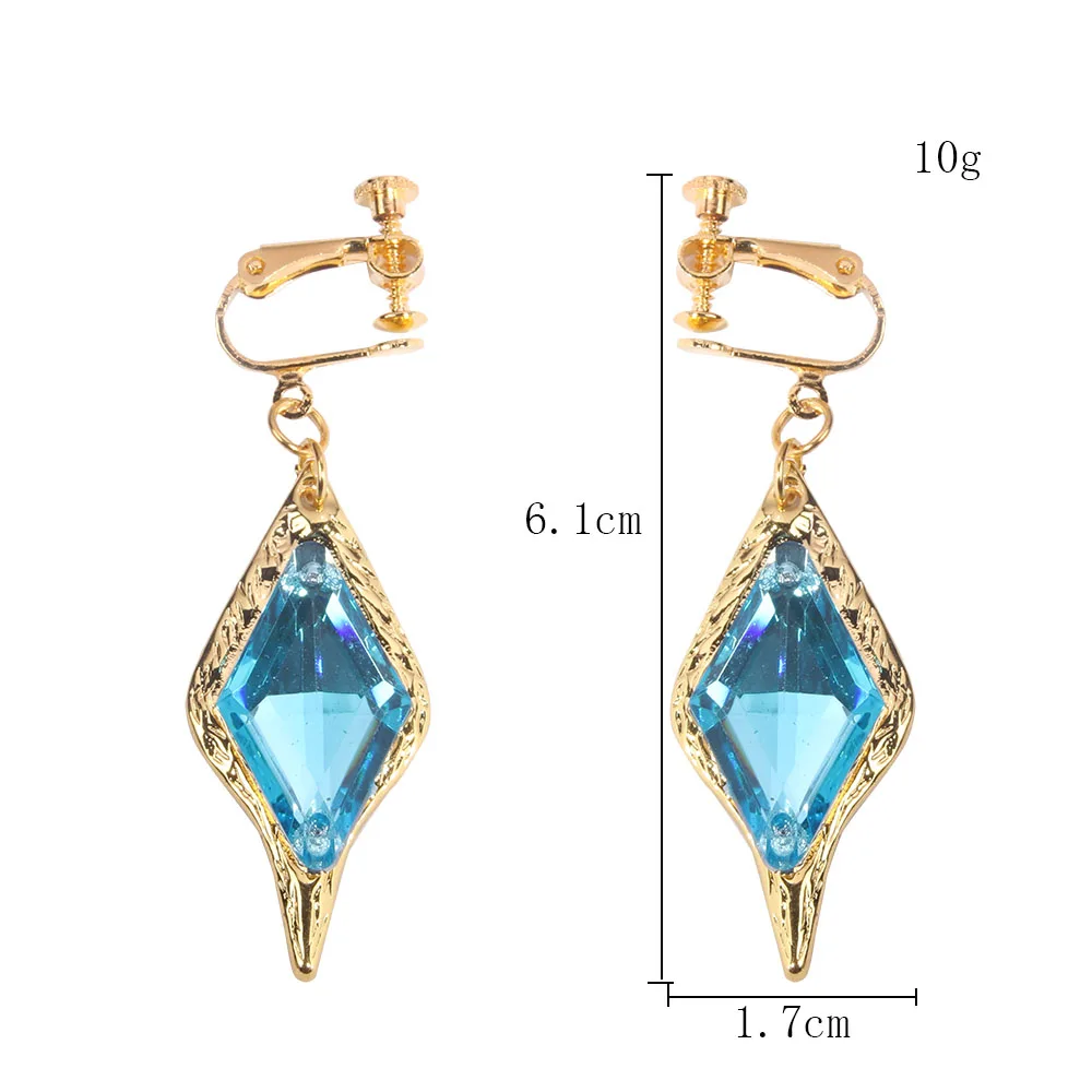 Игровые ударные серьги Genshin, косплей, рыцари кейя, подвеска с синим кристаллом, клипса для ушей, модные аксессуары, ювелирные изделия, подарок для женщин и мужчин