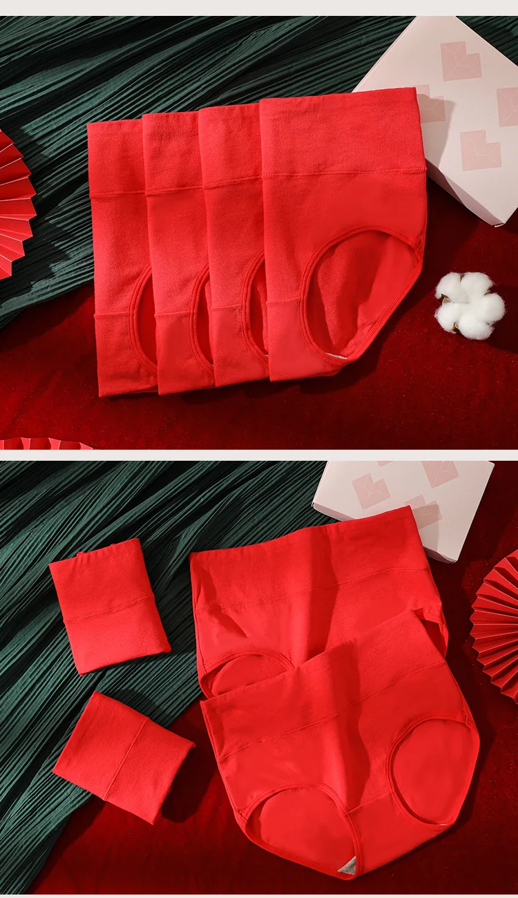 4 шт.комплект, женские трусики с высокой талией, хлопковое нижнее белье красного цвета, дышащие Бесшовные трусы, сексуальное женское белье, M-XXL