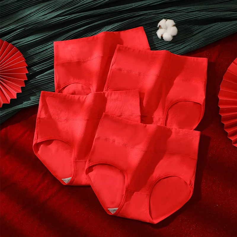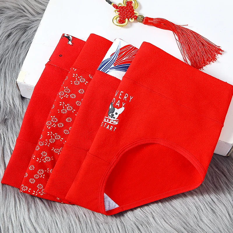 4 шт.компл., женские трусики, хлопковые, для удачи, красные, мягкие...