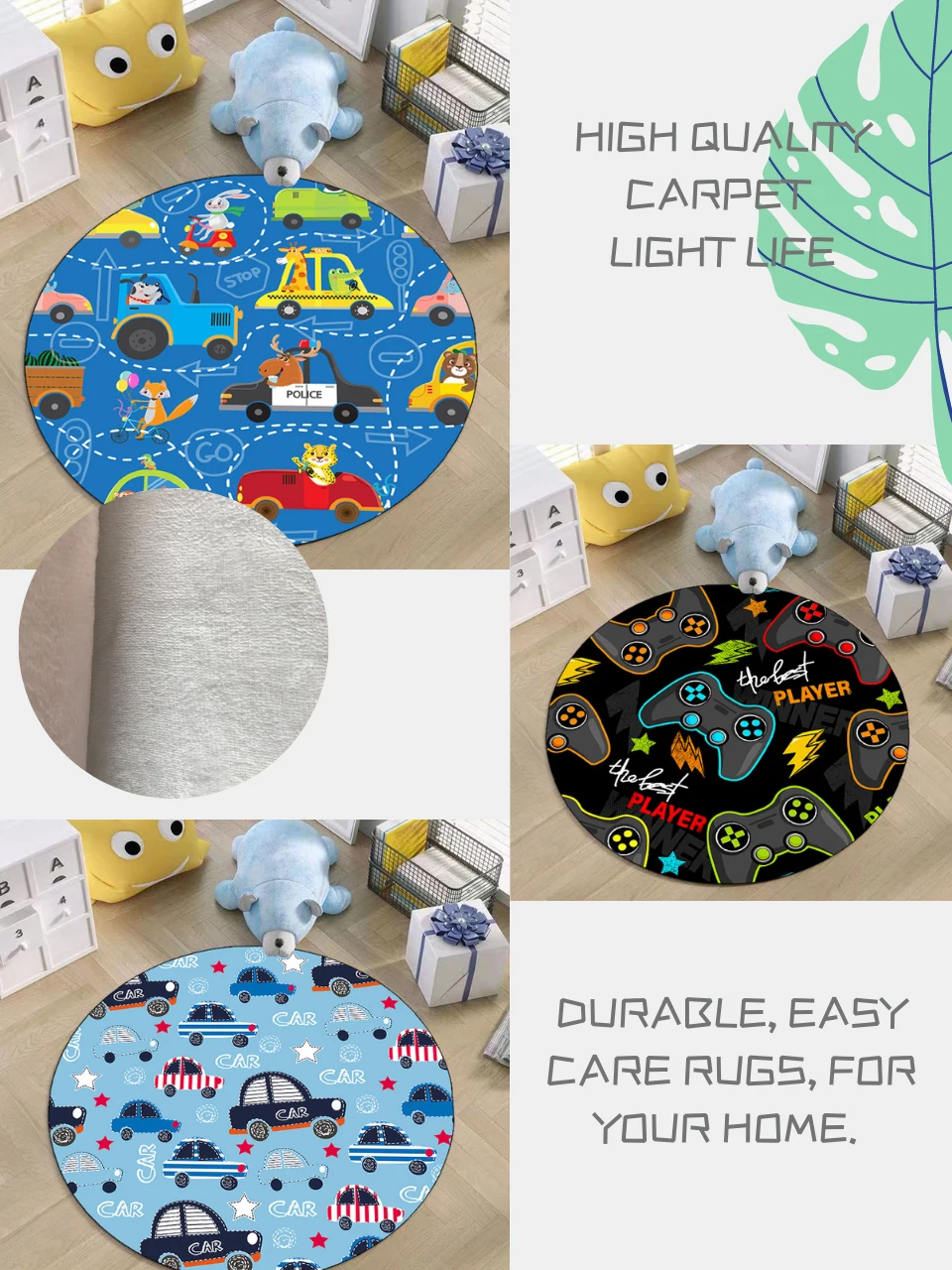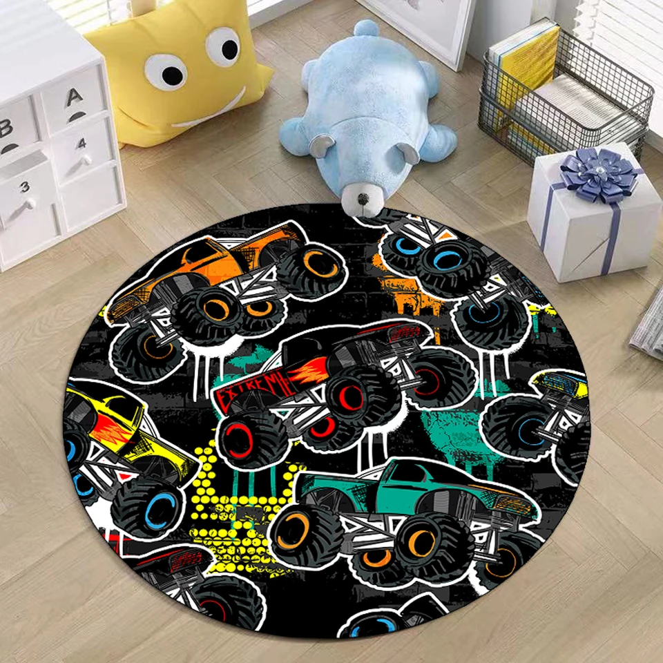 Детские милые круглые ковры с рисунками из мультфильмов, автомобильные коврики с принтом для гостиной, спальни, декоративный коврик для пола, нескользящий игровой коврик