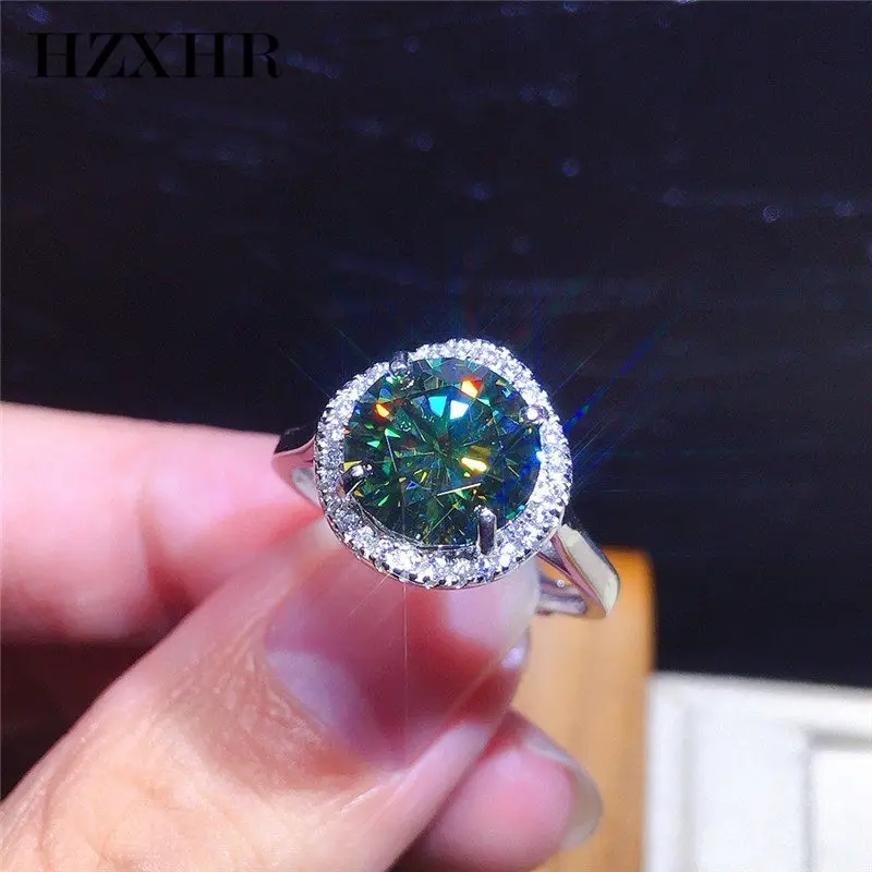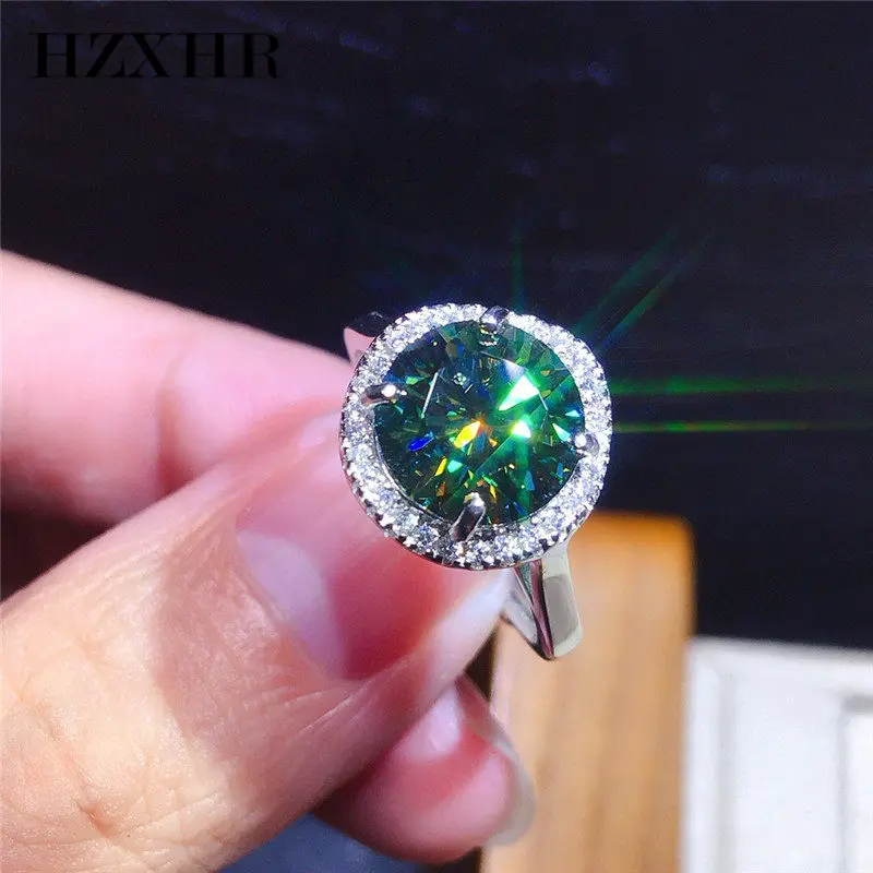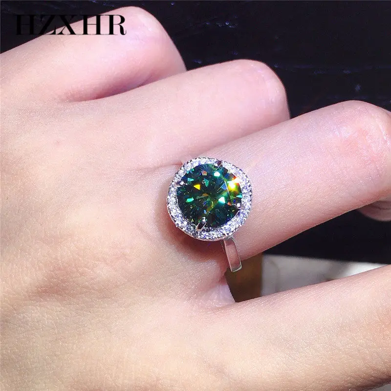 Кольцо обручальное с бриллиантом 3 карата, классическое бриллиантовое серебряное круглое Изумрудное кольцо с бриллиантом с бриллиантовой огранкой зеленого муассанита