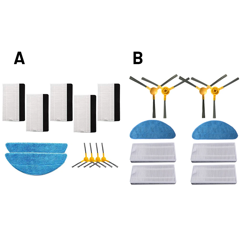 B: 4 * боковые щетки, 4 * фильтр (с губкой), 2 * протрите