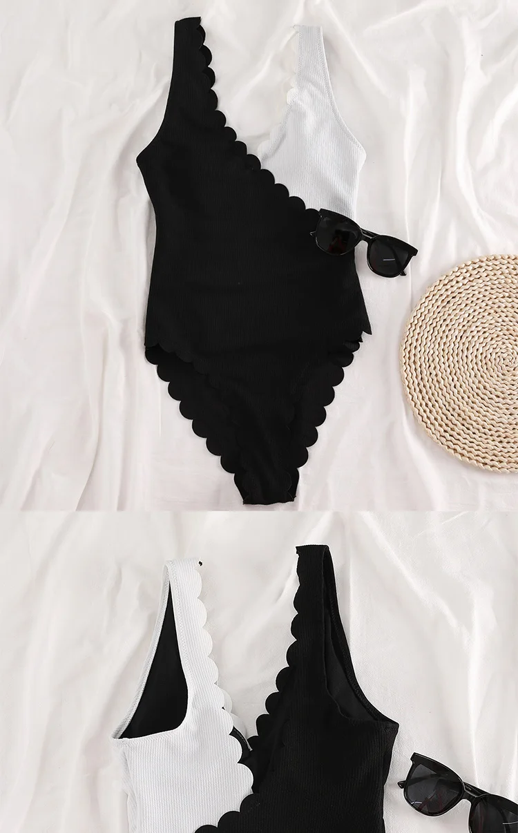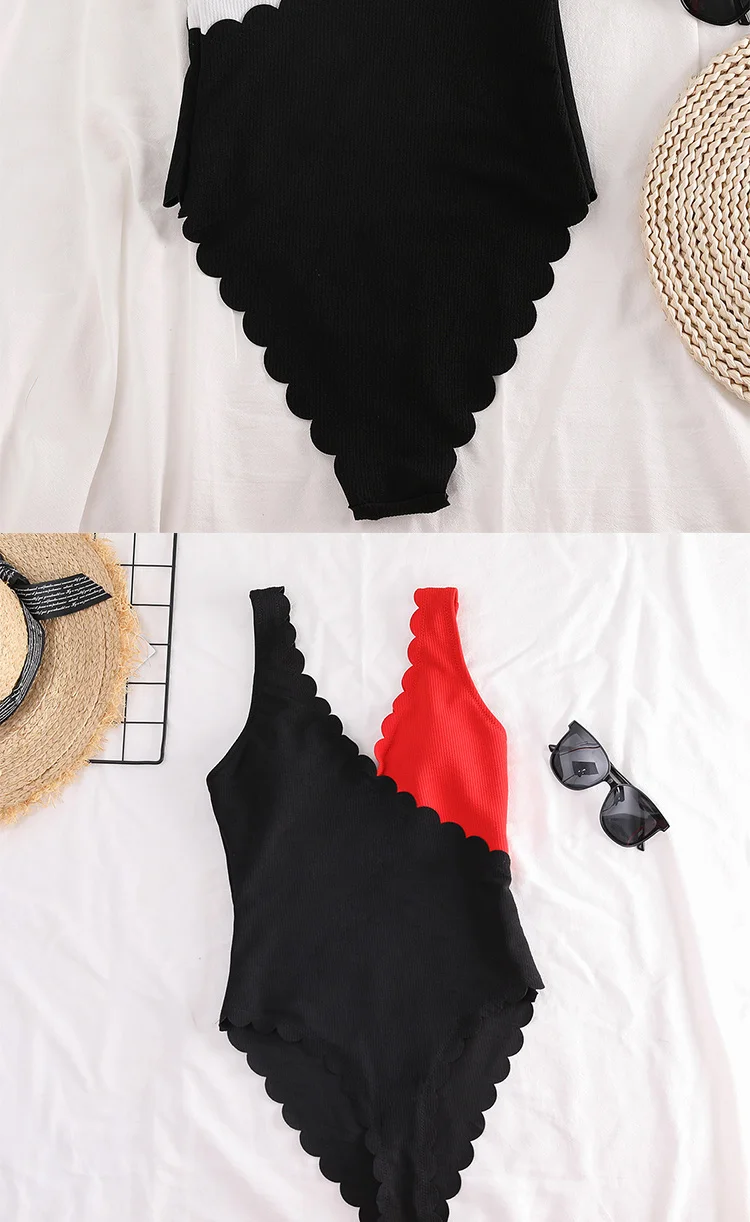 Однотонный цельный купальник в рубчик 2022, женская одежда для плавания с лепестками, женский купальный костюм, комбинированный купальный костюм, пикантное бикини, бикини в рубчик
