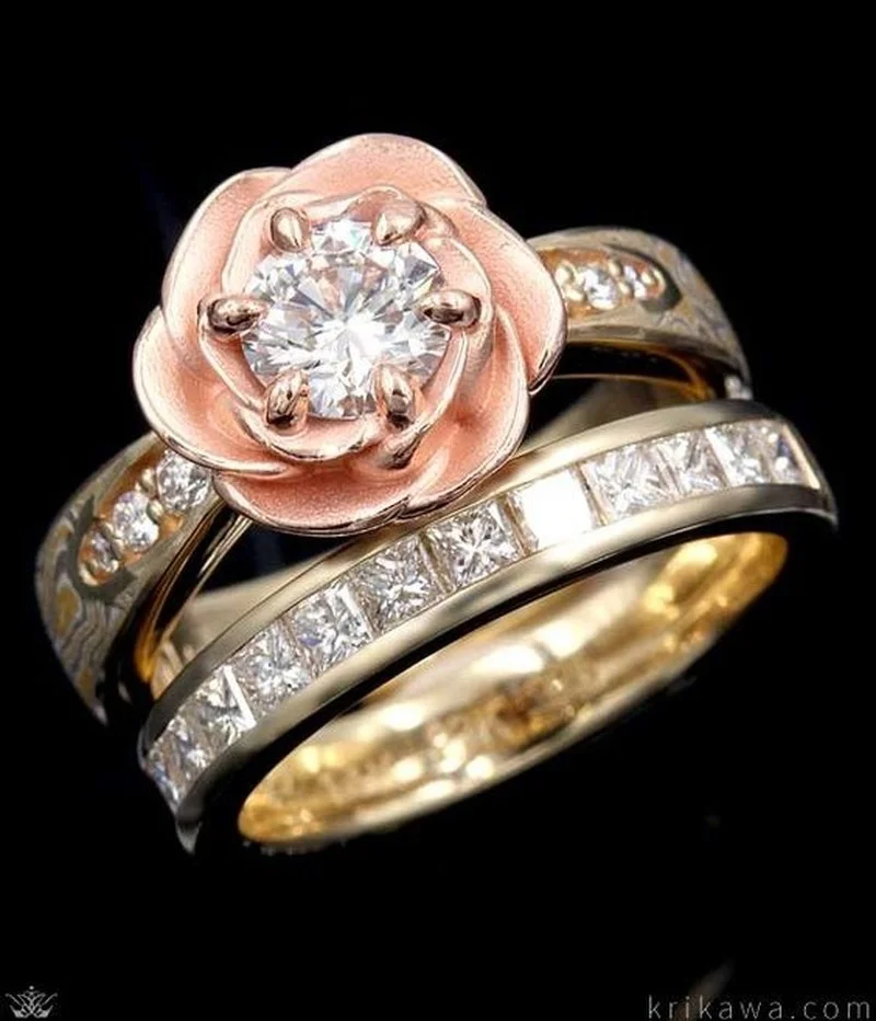 Золотое эмалированное кольцо с цветком, Золотое кольцо с рожденным ...