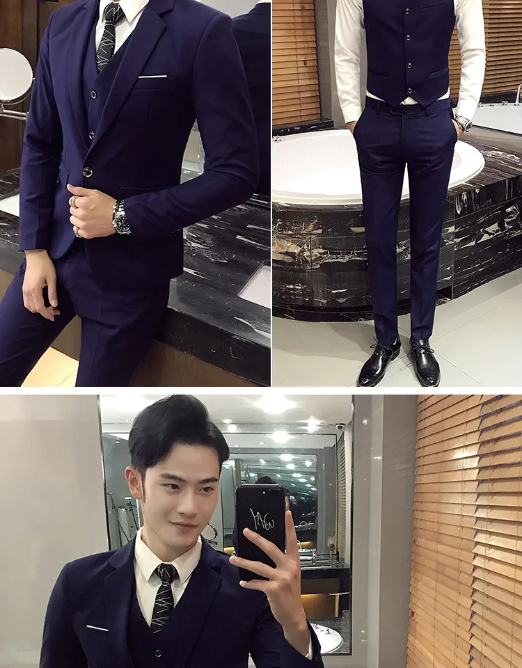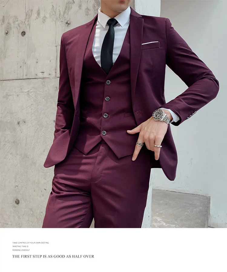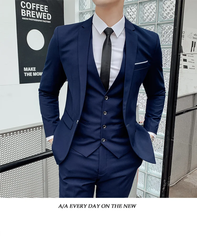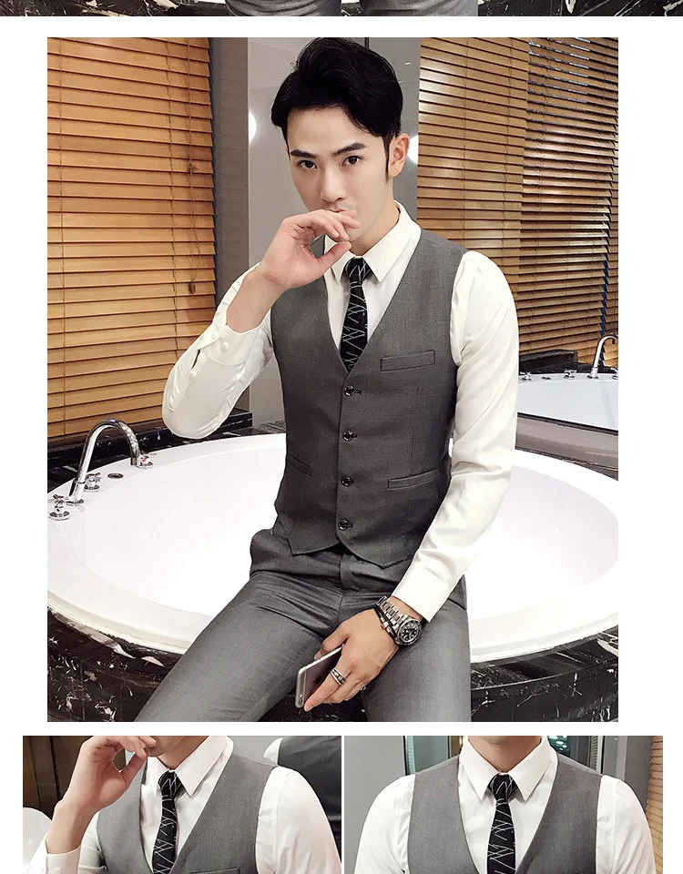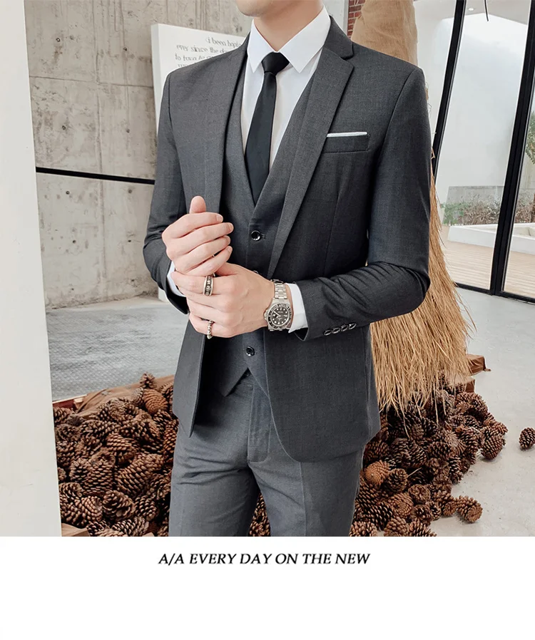 Мужской приталенный пиджак PFNW в стиле смарт-кэжуал, пиджак на одной пуговице, однотонный жилет и брюки со средней талией, три предмета