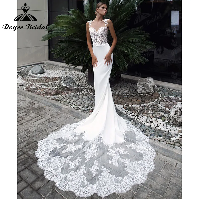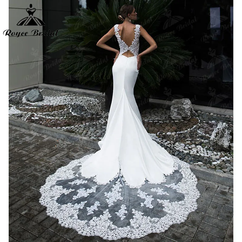 Женское атласное свадебное платье с юбкой-годе, открытой спиной и шлейфом