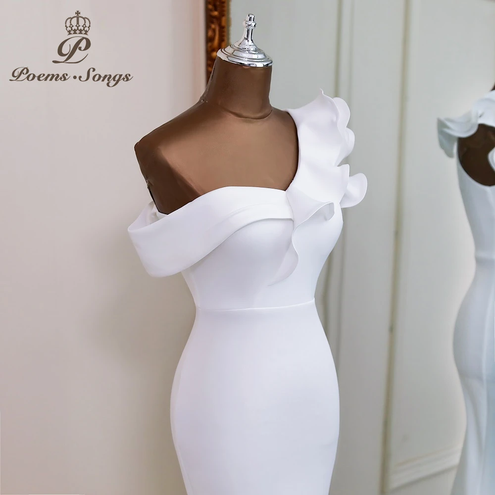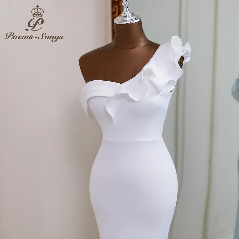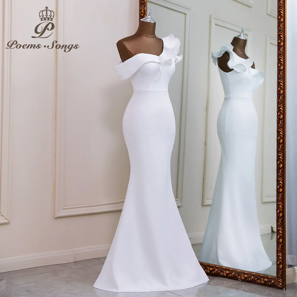 Женское вечернее платье-русалка, элегантное белое платье на одно плечо