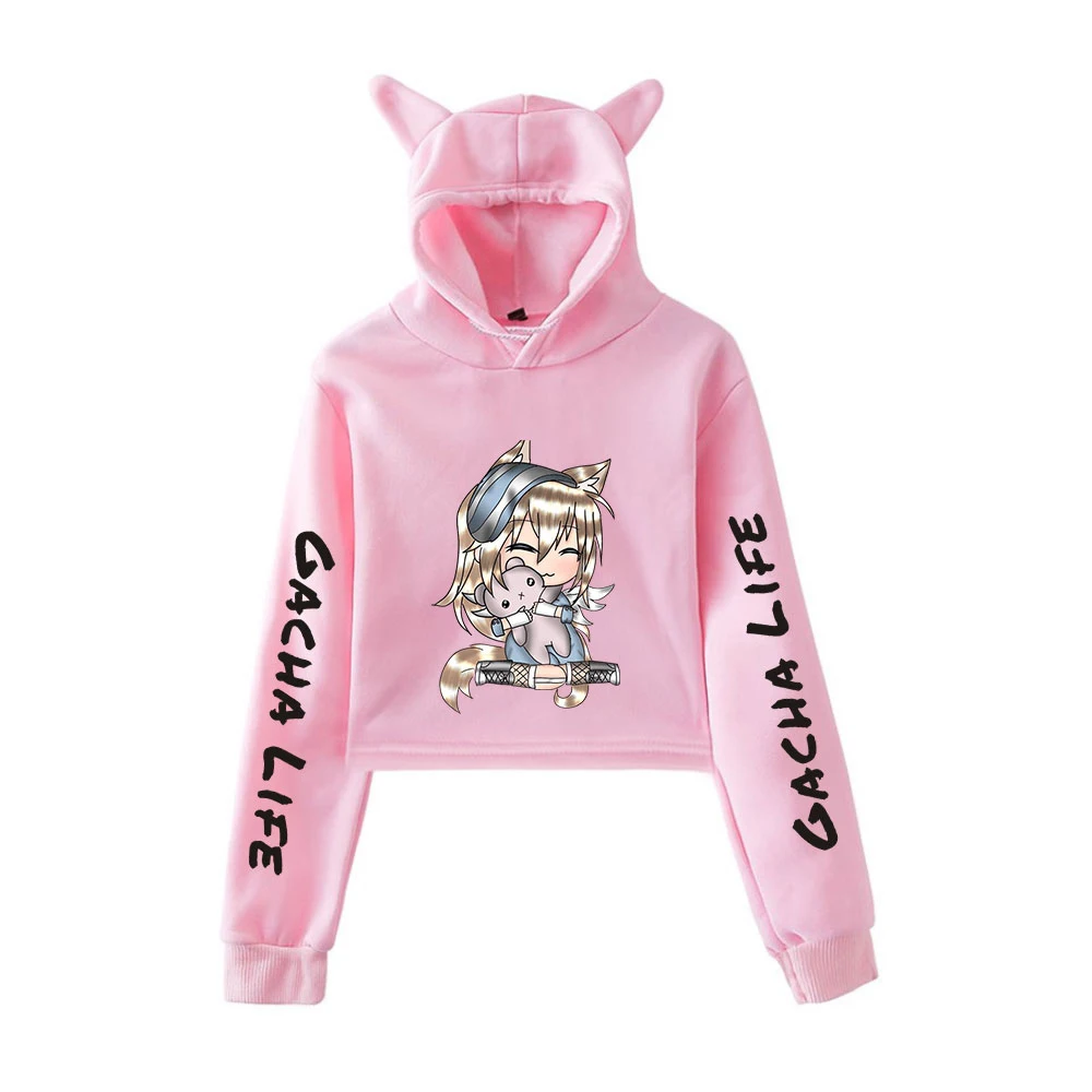 Горячая игра Gacha жизнь укороченный худи с кошачьими ушами Кофты д...