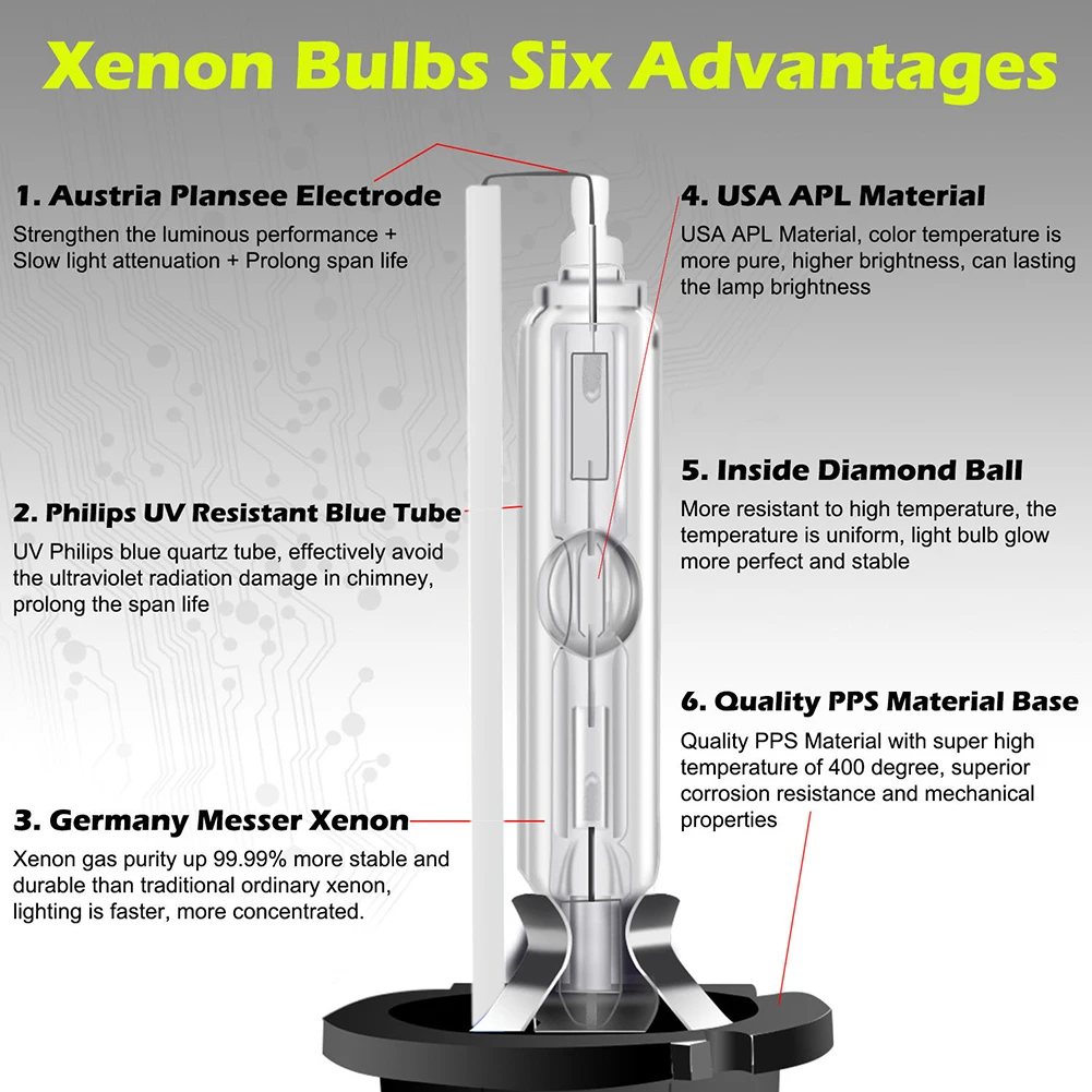 Ксеноновая лампа для автомобильных фар, 2 шт., D1S D2S D3S D4S 4300K6000K HID ксеноновая лампа 12 В 35 Вт, аксессуары для автомобильных фар, противотуманных фар