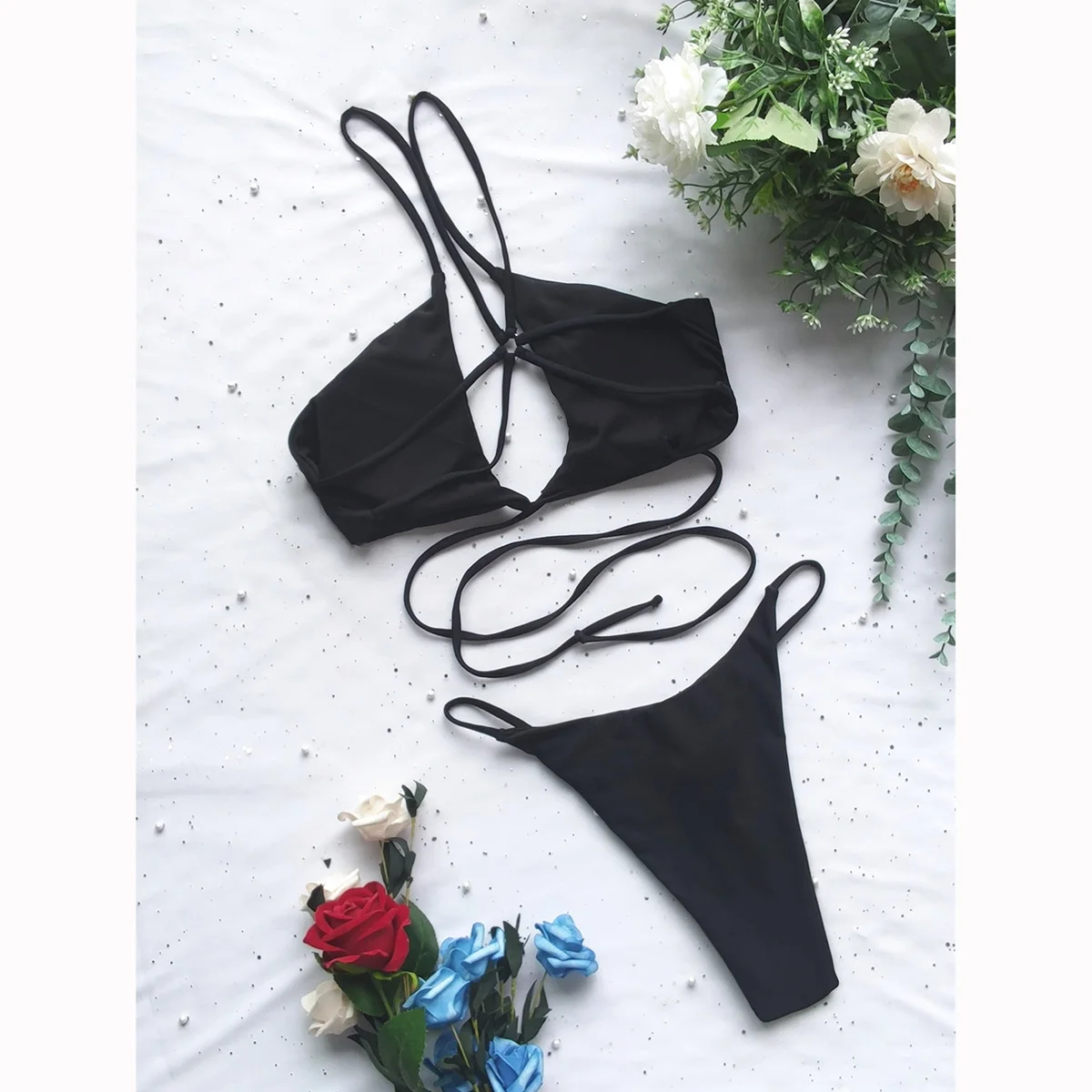 Бандажное бикини 2022, сексуальный женский купальник, однотонный купальник, Женский комплект бикини, Бразильский купальный костюм, пляжная одежда