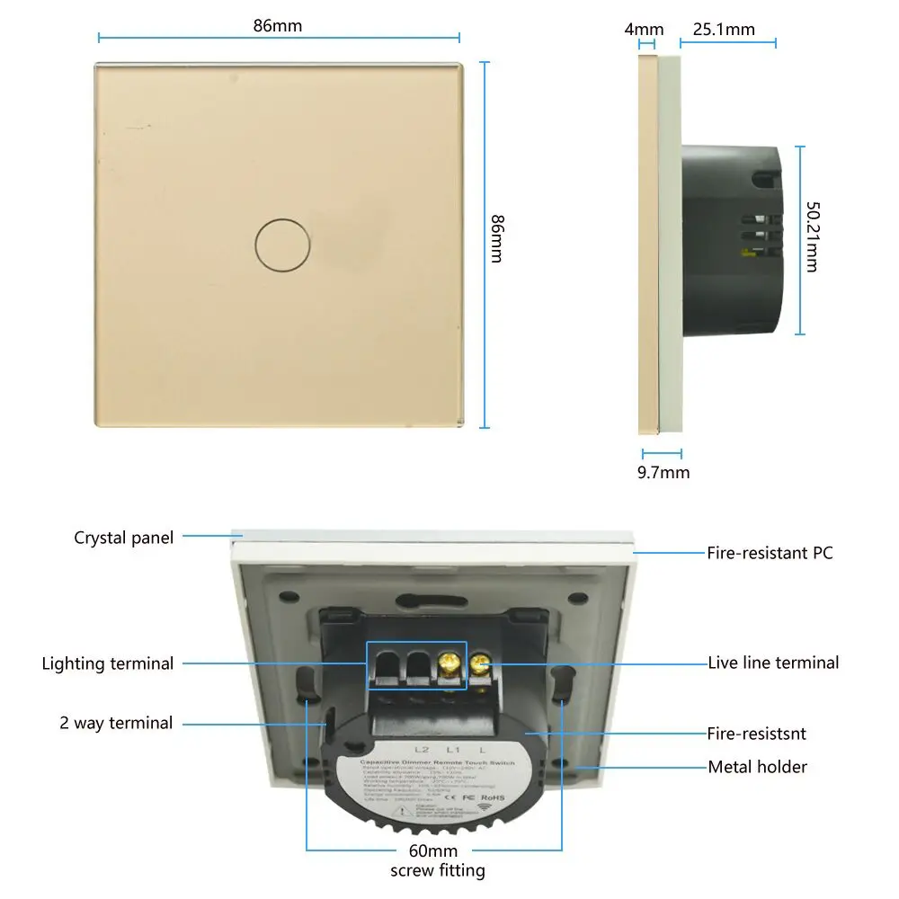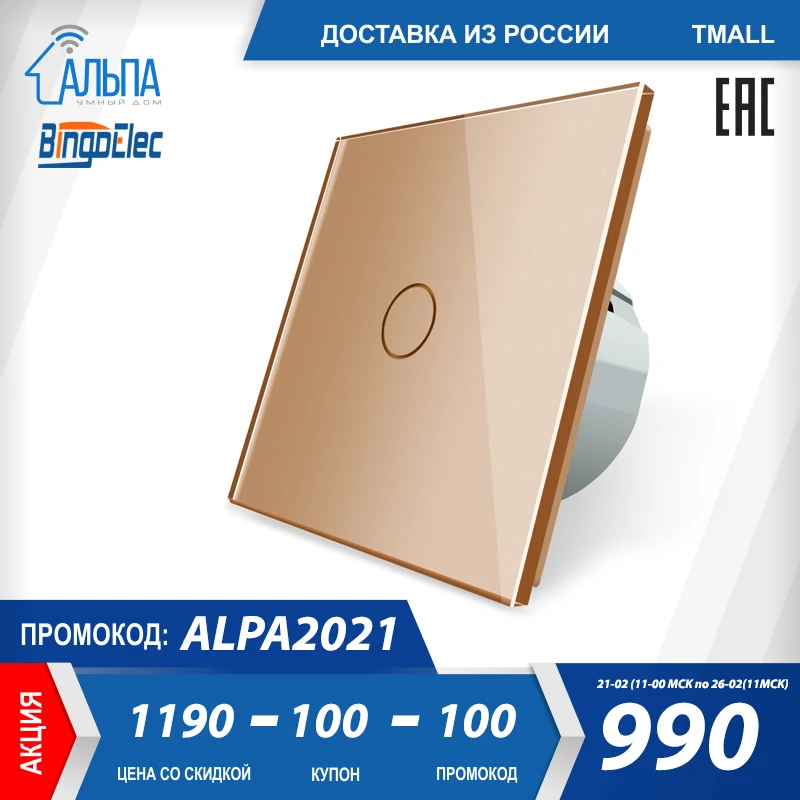 Сенсорный выключатель, Bingoelec, выключатель света (1 клавиша), закаленное стекло, S1-101з