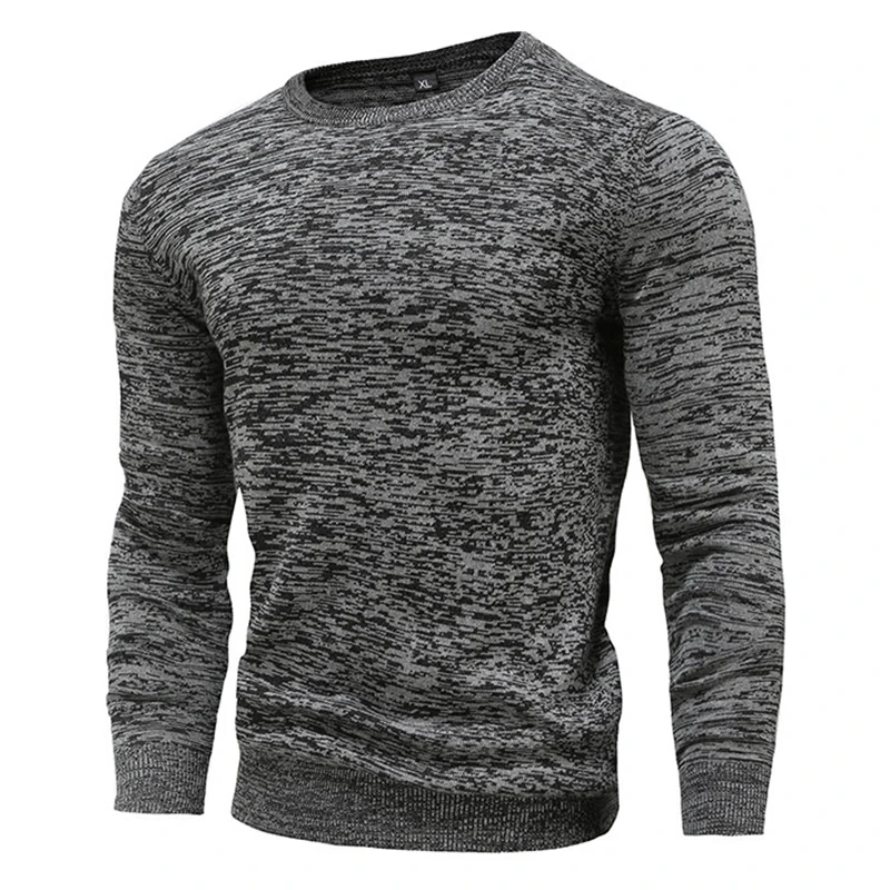 Мужской трикотажный пуловер с круглым вырезом, серый или черный