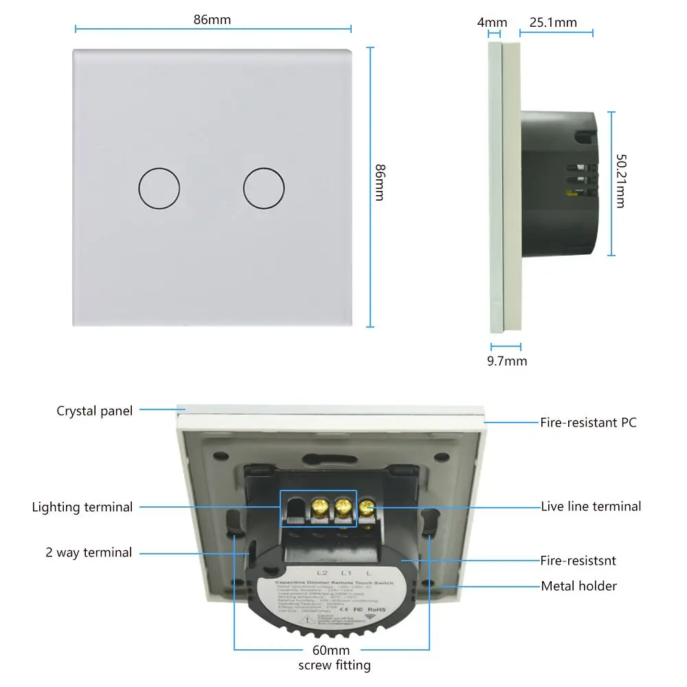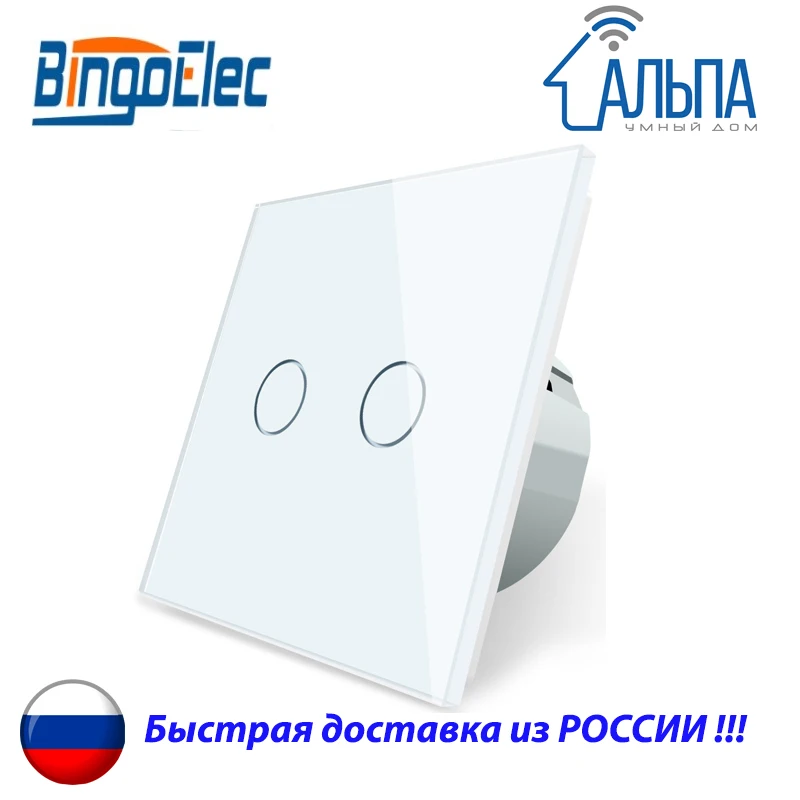 Сенсорный выключатель, Bingoelec, выключатель света (2 клавиши), закаленное стекло, S1-201б
