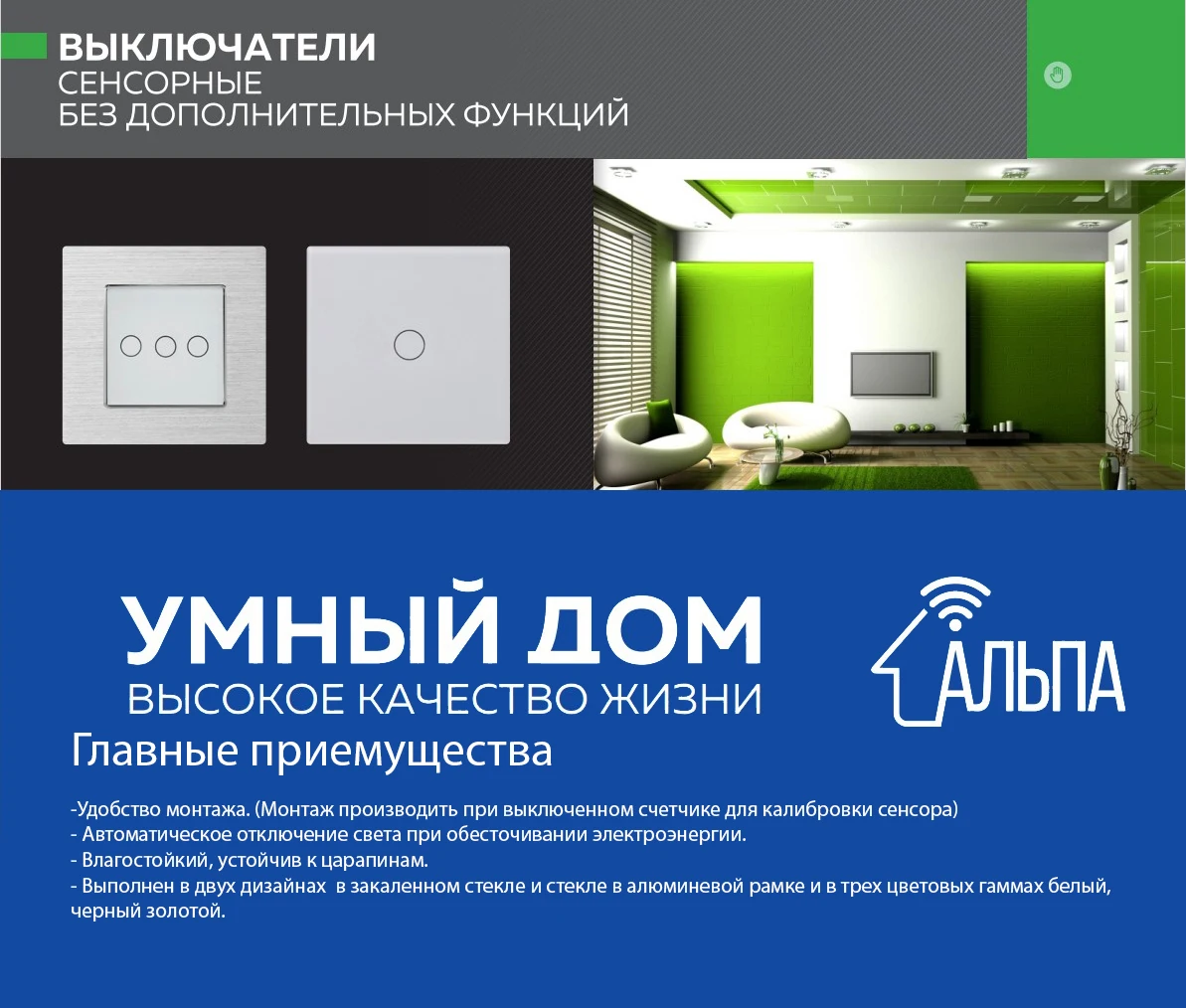 Стильный выключатель,отлично смотрится в интерьере, Обычный монтаж.(главное выключить автоматы, поставить выключатель со стеклянной панелью, а потом их включить) это особенности сенсора.Чувствительный сенсор, откликается даже если рука мокрая. Вобщем покупкой доволен! Уход-только протереть, никаких стыков и выемок, пыли просто негде собираться. Огонь одним словом.порадовала скорость доставки.На удивление-для почты России .