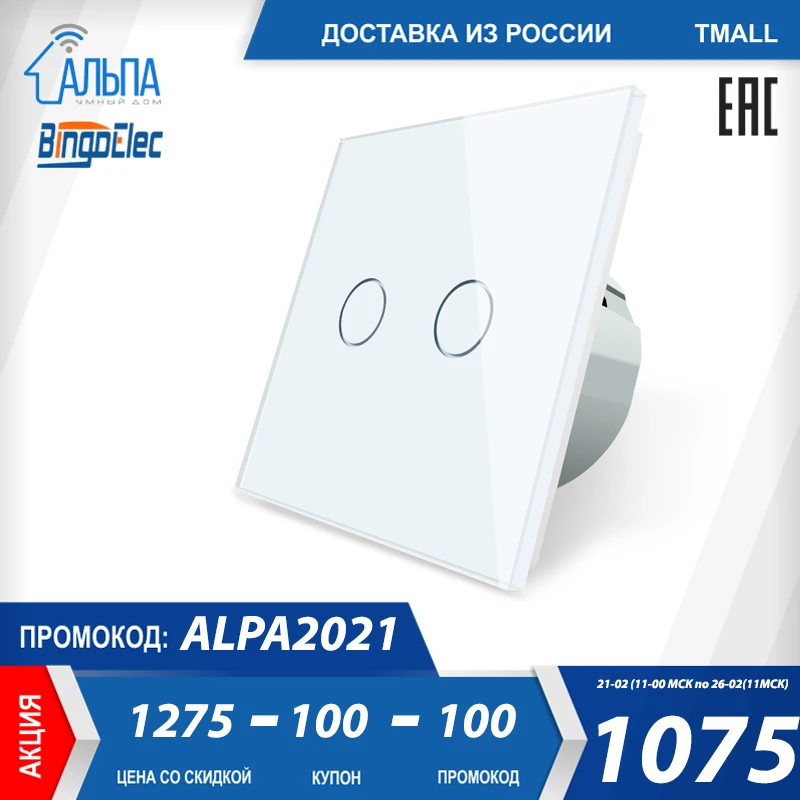 Страна: RU Color: Белый Ships From: Russian Federation Standard: EU Standard Number of Gangs: 2-Gang Voltage: 220V Доставка: MyMall: Пункт выдачи в города 14.01.2022