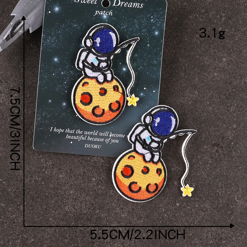 Нашивки с вышивкой Луны астронавта, термоклейкие Симпатичные нашивк...
